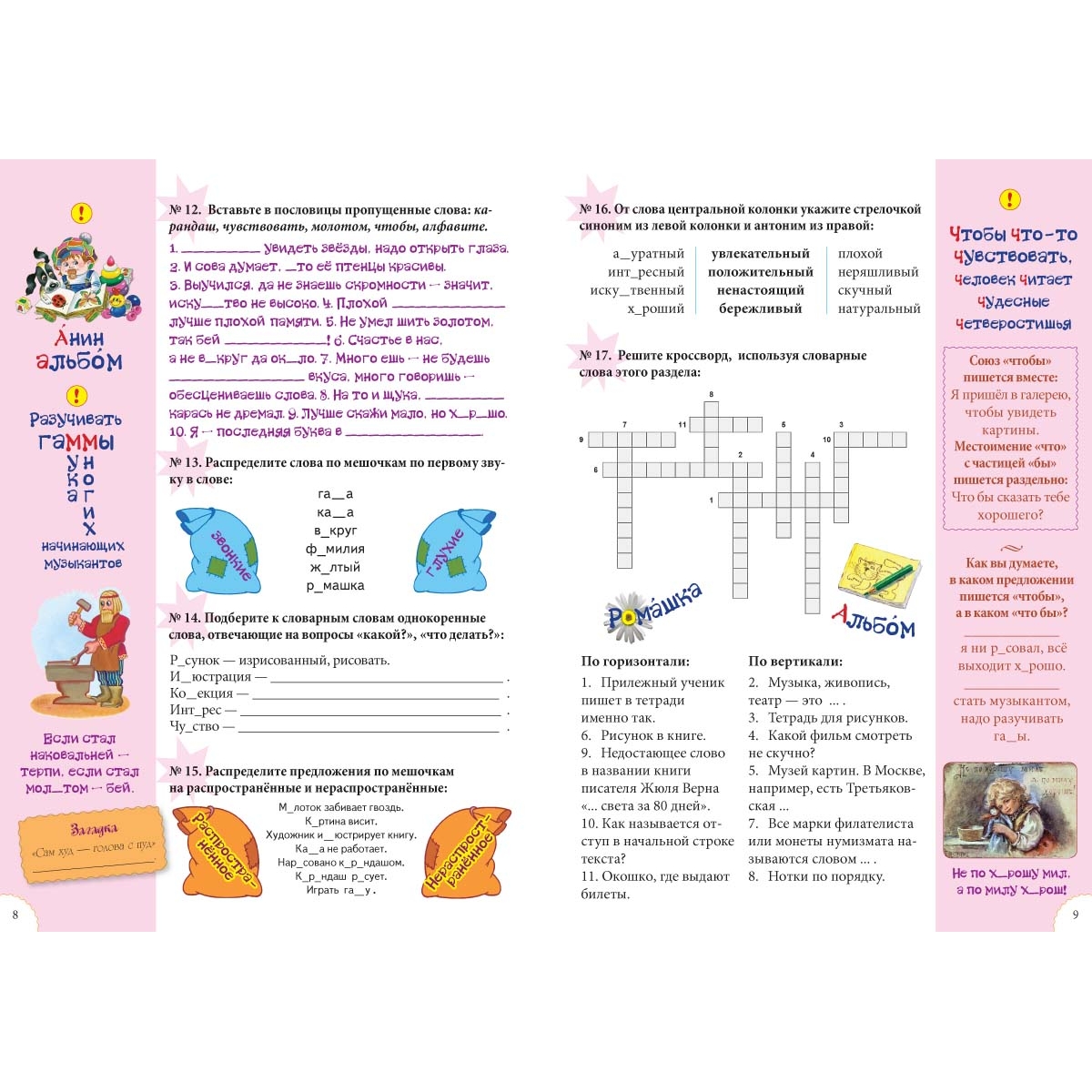 Учить словарные слова — работа, которая чаще всего не вызывает энтузиазма ни у учителей ни у учеников и порой воспринимается как рутина. Данное пособие поможет разнообразить словарную работу на уроках и дома. Материал, приведенный в нем, превратит непростую, и порой безрезультатную, работу в полезное и интересное занятие, расширит представления детей о русском языке. С помощью словарных слов дети узнают, что такое этимология, родственные и устаревшие слова, синонимы. Ну и, конечно, хорошо запомнят сами слова, их написание.