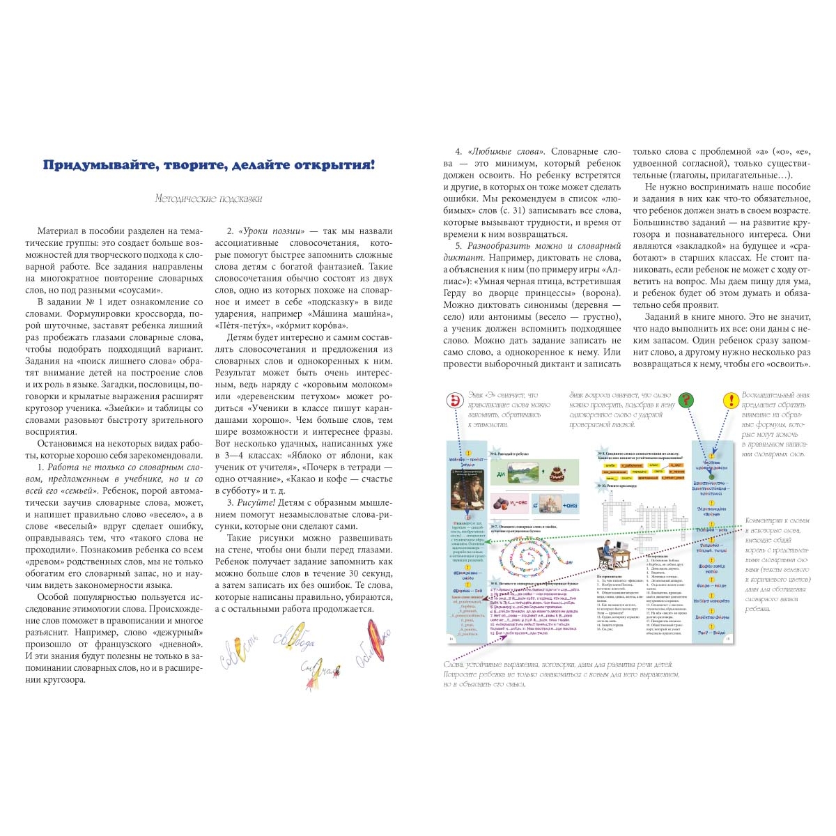 Учить словарные слова — работа, которая чаще всего не вызывает энтузиазма ни у учителей ни у учеников и порой воспринимается как рутина. Данное пособие поможет разнообразить словарную работу на уроках и дома. Материал, приведенный в нем, превратит непростую, и порой безрезультатную, работу в полезное и интересное занятие, расширит представления детей о русском языке. С помощью словарных слов дети узнают, что такое этимология, родственные и устаревшие слова, синонимы. Ну и, конечно, хорошо запомнят сами слова, их написание.