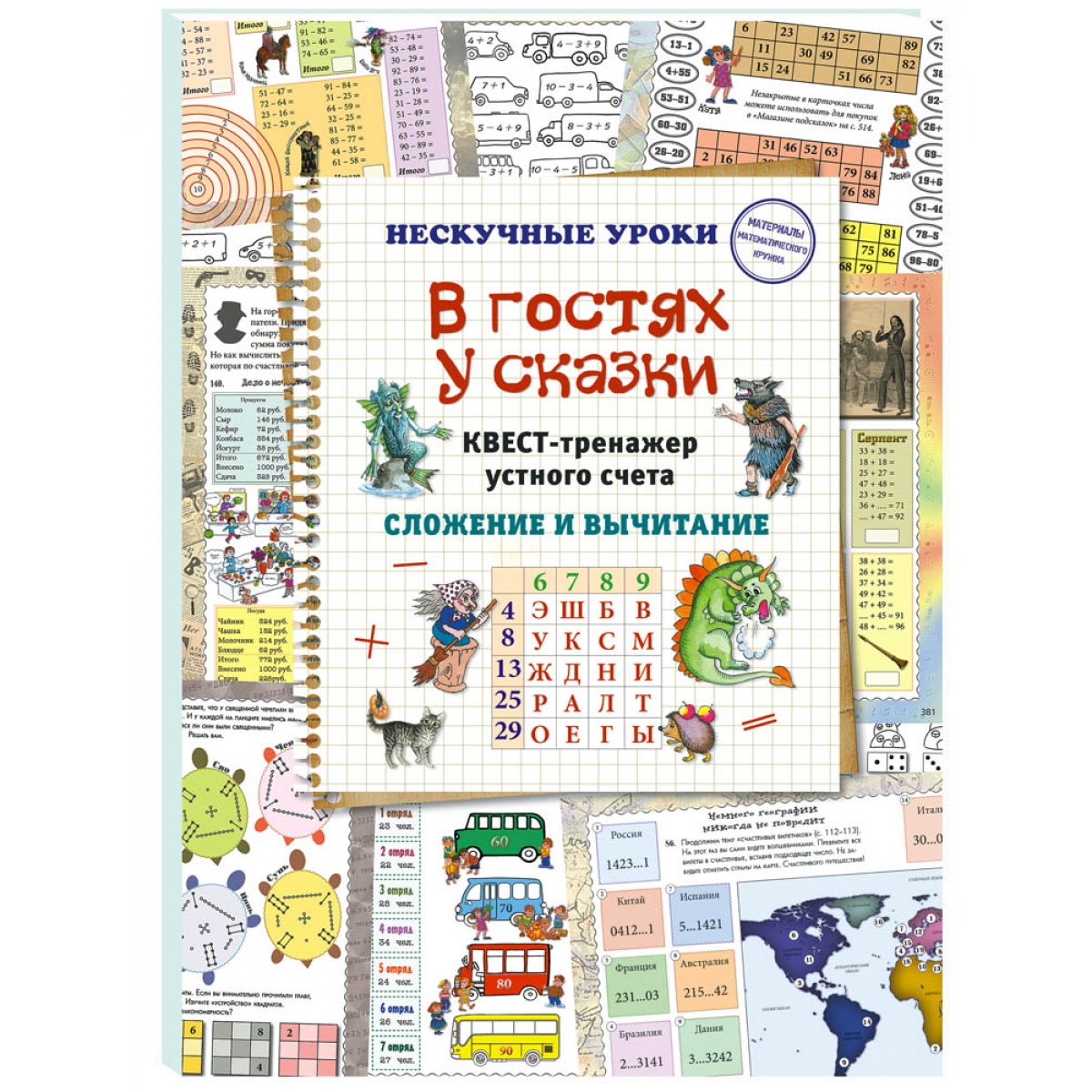 «Устный счет — гимнастика для ума». Сделать его интересным и разнообразным поможет квест-тренажер «В гостях у сказки», предназначенный для учеников 1–2 классов. Задания в нем направлены на отработку определенного типа примеров устного счета от счета в пределах 100. Сказочная тематика позволяет использовать задания для всевозможных квестов. В тренажере реализован метапредметный подход: ребята вспомнят героев былин и сказок, расшифруют сказочные цитаты. Тренажер подойдет как для индивидуальной, так и коллективной работы на уроках и занятиях кружков. Рекомендуется к использованию вместе с книгой «Квест-тренажер УСТНЫЙ СЧЕТ. Сложение и вычитание», а также с другими тетрадями для коллективных квестов. «Устный счет — гимнастика для ума». Сделать его интересным и разнообразным поможет квест-тренажер «В гостях у сказки», предназначенный для учеников 1–2 классов. Задания в нем направлены на отработку определенного типа примеров устного счета от счета в пределах 100. Сказочная тематика позволяет использовать задания для всевозможных квестов. В тренажере реализован метапредметный подход: ребята вспомнят героев былин и сказок, расшифруют сказочные цитаты. Тренажер подойдет как для индивидуальной, так и коллективной работы на уроках и занятиях кружков. Рекомендуется к использованию вместе с книгой «Квест-тренажер УСТНЫЙ СЧЕТ. Сложение и вычитание», а также с другими тетрадями для коллективных квестов. |