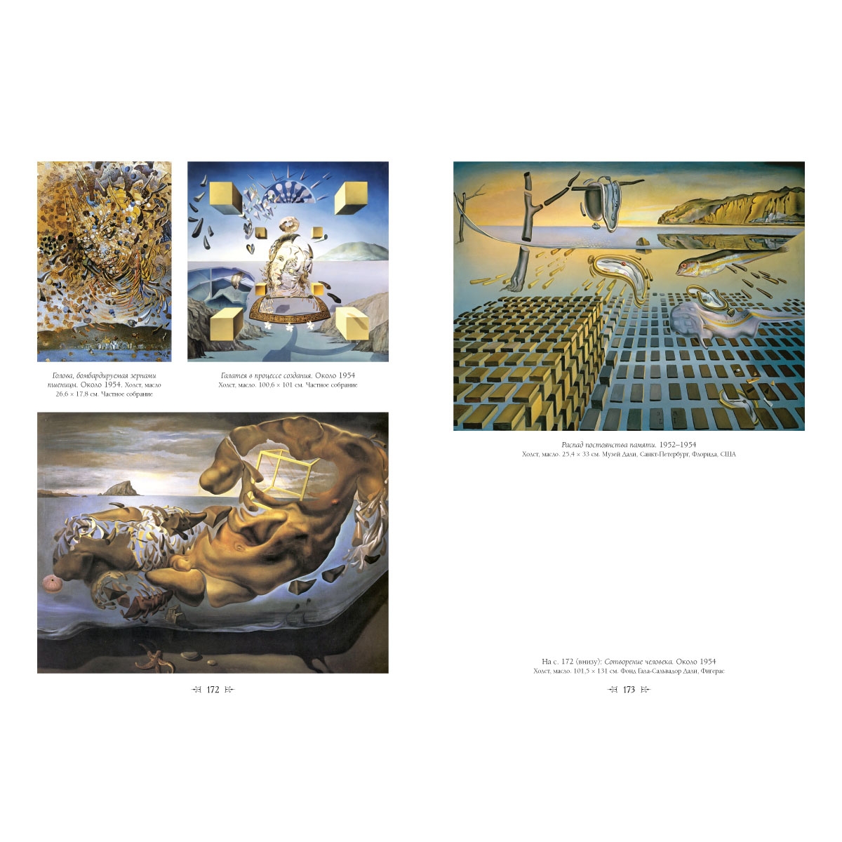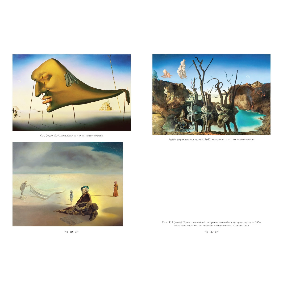 Сальвадор Дали говорил: если художнику ясна творческая задача, то лучше бы он ее не писал. Его образы «экстравагантны, но не лишены смысла». А своих зрителей мастер назидал: если вам не понятен замысел живописца, придайте картине… собственный смысл. Переплет ручной работы. Натуральная переплетная кожа. Каптал из шелковых нитей. Ляссе шелковое. Обрез торшонированный золотой фольгой. Украшение переплета: печать на коже сольвентными чернилами.