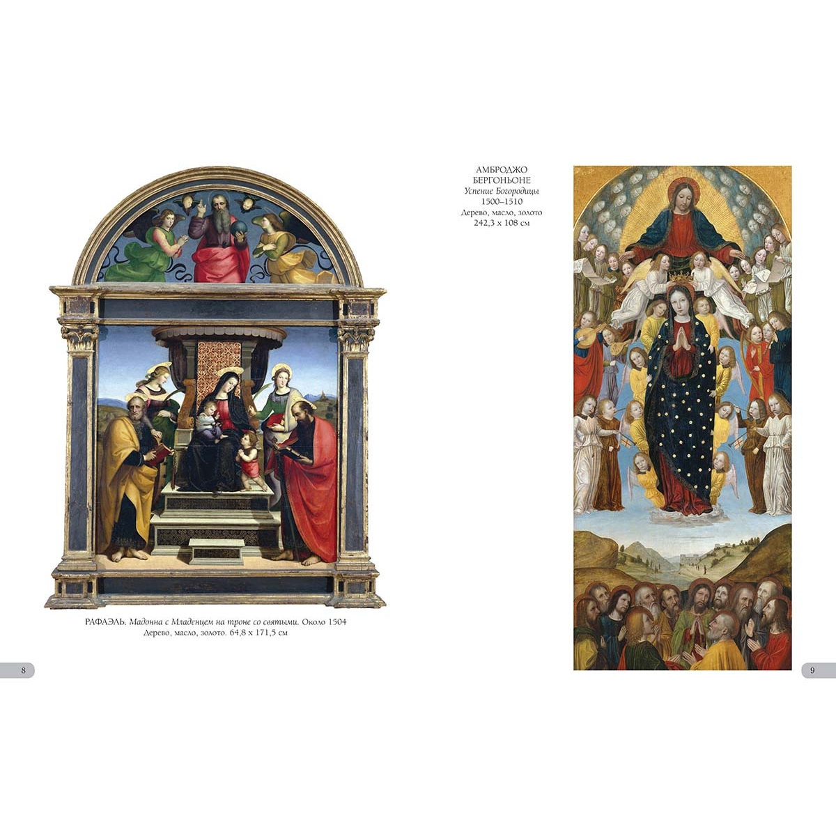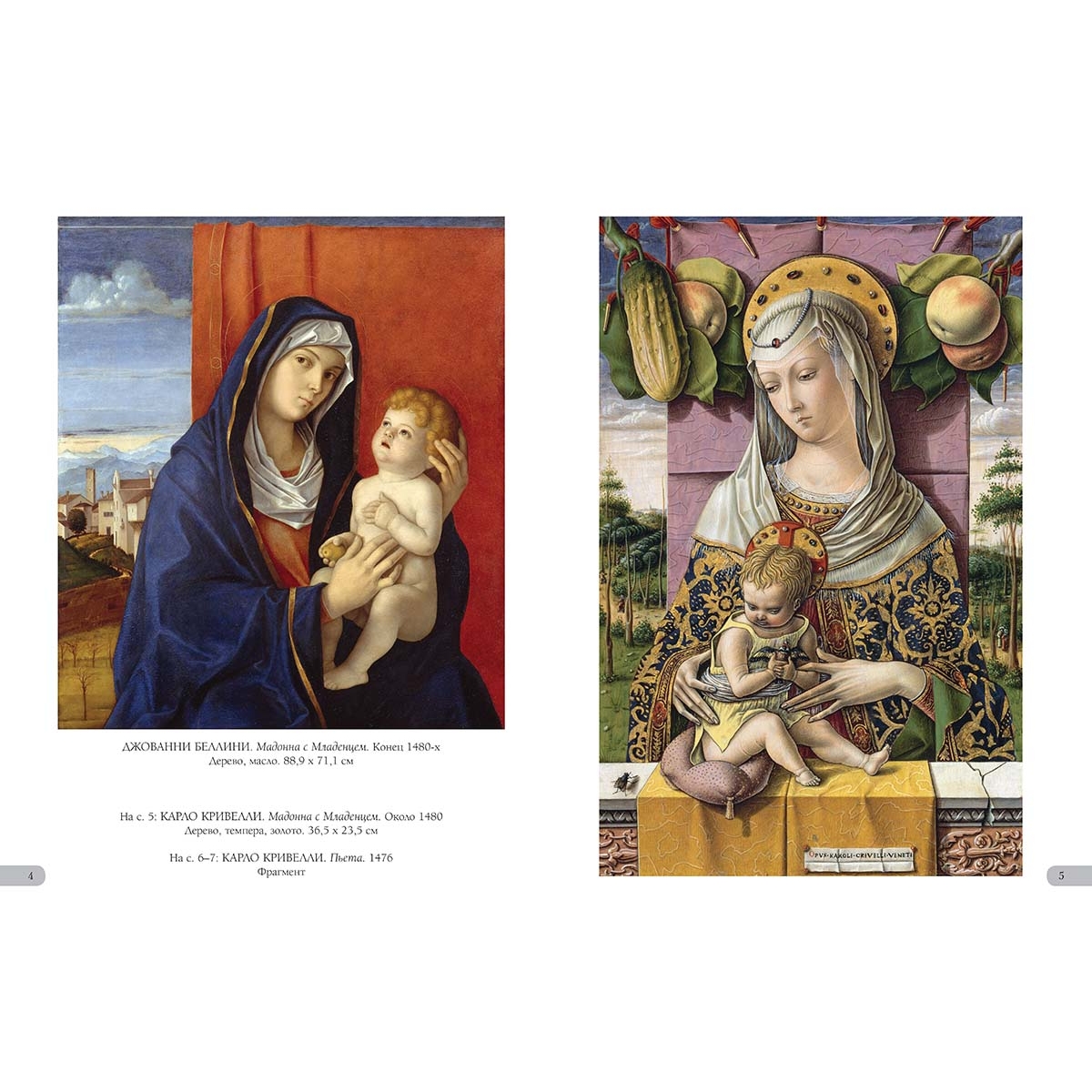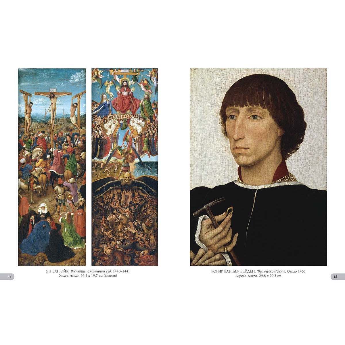 УКАЗАТЕЛЬ ПРОИЗВЕДЕНИЙ Беллини, Джованни Мадонна с Младенцем. Конец 1480-х 4 Бергоньоне, Амброджо Успение Богородицы. 1500–1510 9 Босх, Иероним Поклонение волхвов. Около 1475 21 Брейгель Старший, Питер Жатва. 1565 27 Бронзино, Аньоло Портрет юноши. 1530-е 13 Ван Гог, Винсет Букет цветов в вазе. 1890 46 Ван Эйк, Ян Распятие. 1440–1441 14 Страшный суд. 1440–1441 14 Ватто, Антуан Меццетен. 1718–1720 41 Вейден, Рогир ван дер Франческо д'Эсте. Около 1460 15 Вермер, Ян Молодая женщина с кувшином воды. Около 1662 35 Спящая горничная. Около 1656–1657 34 Веронезе, Паоло Марс и Венера, связанные Амуром. 1570-е 10 Давид, Герард Воскресение и Встреча в Эммаусе. Около 1510 18 Мадонна с Младенцем и четырьмя ангелами. Около 1510–1515 19 Несение креста и Распятие. Около 1510 18 Клеве, Йос ван Благовещение. Около 1525 23 Кранах Старший, Лукас Мученичество святой Варвары. Около 1510 25 Кривелли, Карло Мадонна с Младенцем. Около 1480 5 Пьета. 1476. Фрагмент 6–7 Кристус, Петрус В ювелирной лавке. 1449 16 Латур, Жорж де Гадалка. 1630-е 38 Лотто, Лоренцо Венера и Амур. 1520-е 11 Мане, Эдуар Мадмуазель Викторина в костюме матадора. 1862 43 Мартини, Симоне Мадонна с Младенцем. Около 1326 3 Массейс, Квентин Поклонение волхвов. 1526 22 Мемлинг, Ханс Благовещение. 1465–1470 17 Моне, Клод «Лягушатник». 1869 45 Моретто да Брешиа Портрет мужчины. 1520–1525 12 Натуар, Шарль Жозеф Изгнание из рая. 1740 40 Патинир, Иоахим Покаяние святого Иеронима. Алтарь. 1512–1515 24 Рафаэль Мадонна с Младенцем на троне со святыми. Около 1504 8 Рембрандт Харменс ван Рейн Аристотель перед бюстом Гомера. 1653 33 Ренуар, Пьер Огюст У моря. 1883. Фрагмент 44 Рибера, Хусепе де Святое семейство со святыми Анной и Екатериной Александрийской. 1648 31 Рубенс, Питер Пауль Охота на волков и лис. Около 1616. Фрагмент 36–37 Сурбаран, Франсиско де Детство Девы Марии. Около 1632–1633 30 Халс, Франс Забавы на Масленой неделе. Около 1616–1617 32 Хольбейн Младший, Ханс Портрет Германа фон Ведига III. 1532 26 Шампень, Филипп де Благовещение. Около 1644 39 Шарден, Жан-Батист Симеон Мыльные пузыри. Около 1733–1734 42 Эль Греко Несение креста. 1577–1587 28 Портрет кардинала Фернандо Нино де Гевара. Около 1600 29 Юстус ван Гент Поклонение волхвов. Около 1465 20