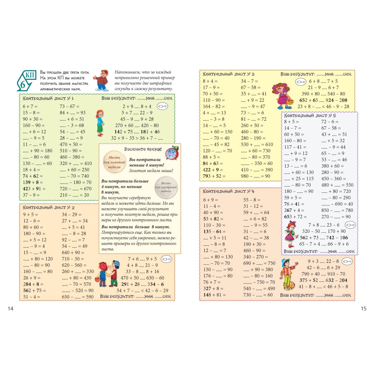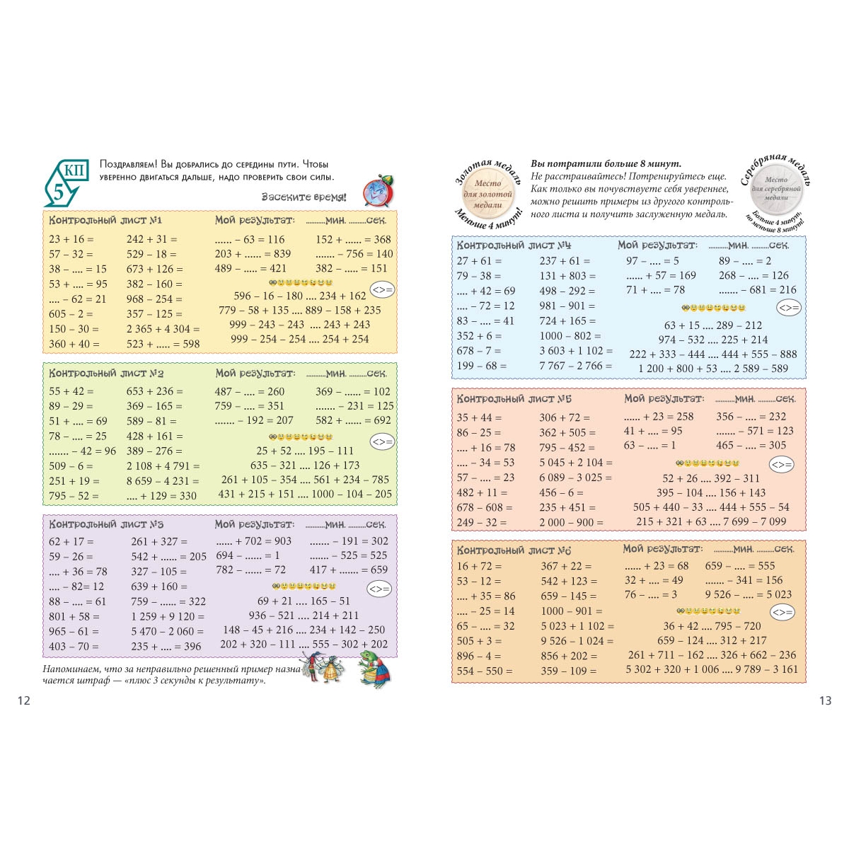 В «Тетради личных достижений» собраны и структурированы математические примеры по сложности. Задание каждого разворота — КП (контрольного пункта) направлено на отработку определенного типа примеров. Тренажер предназначен для учеников 2–4 классов.