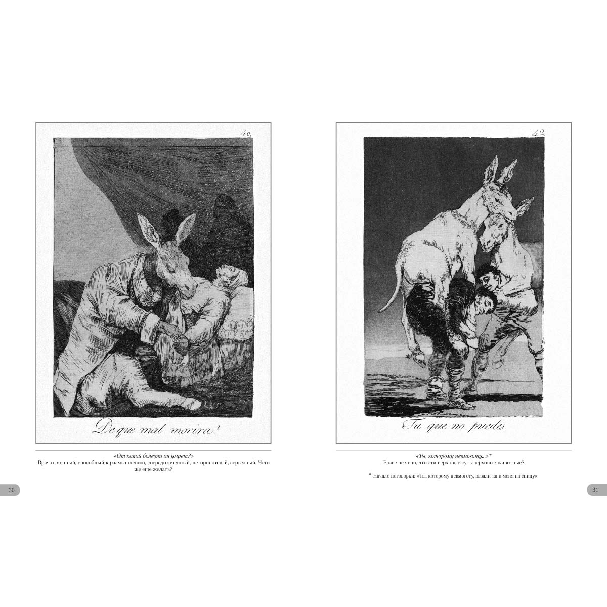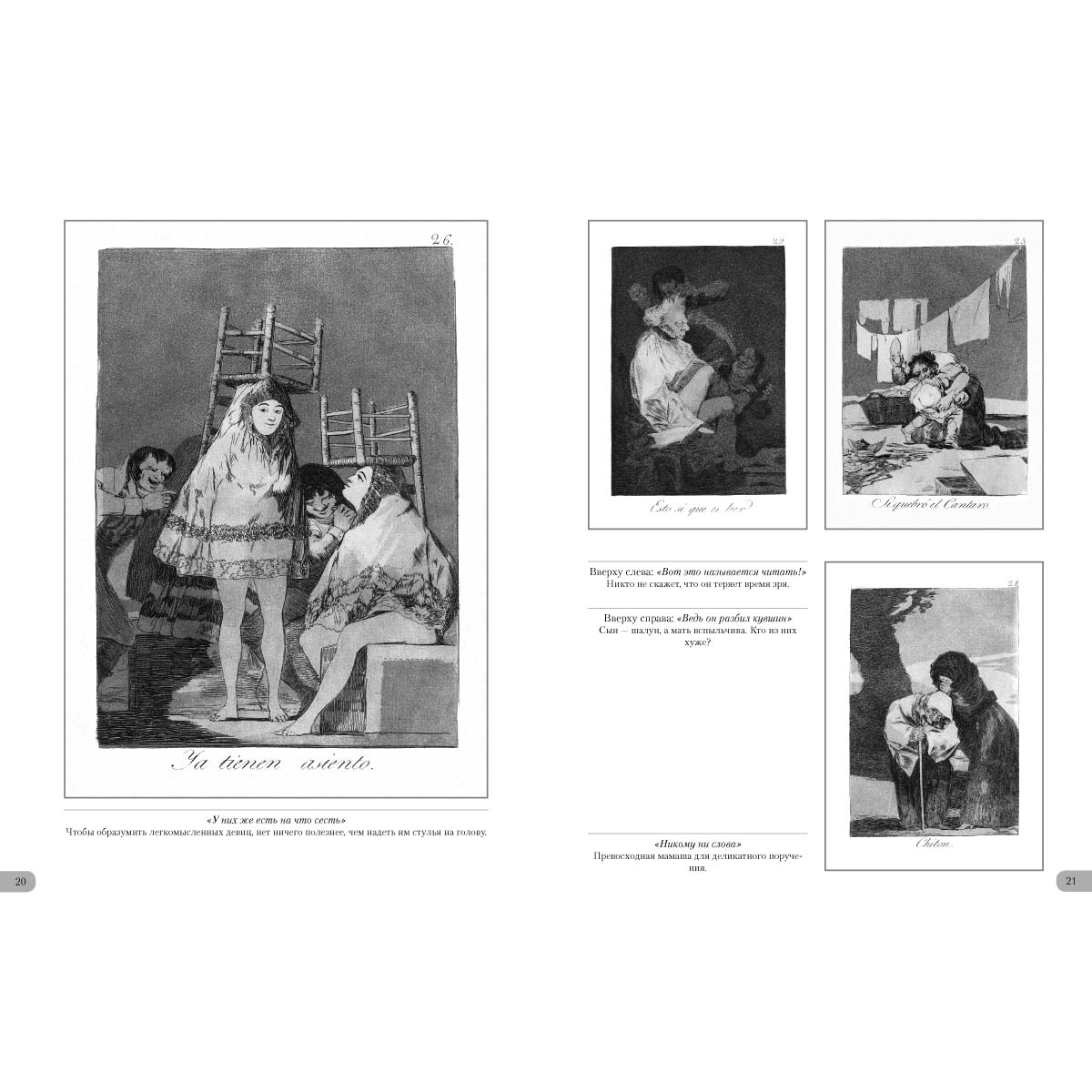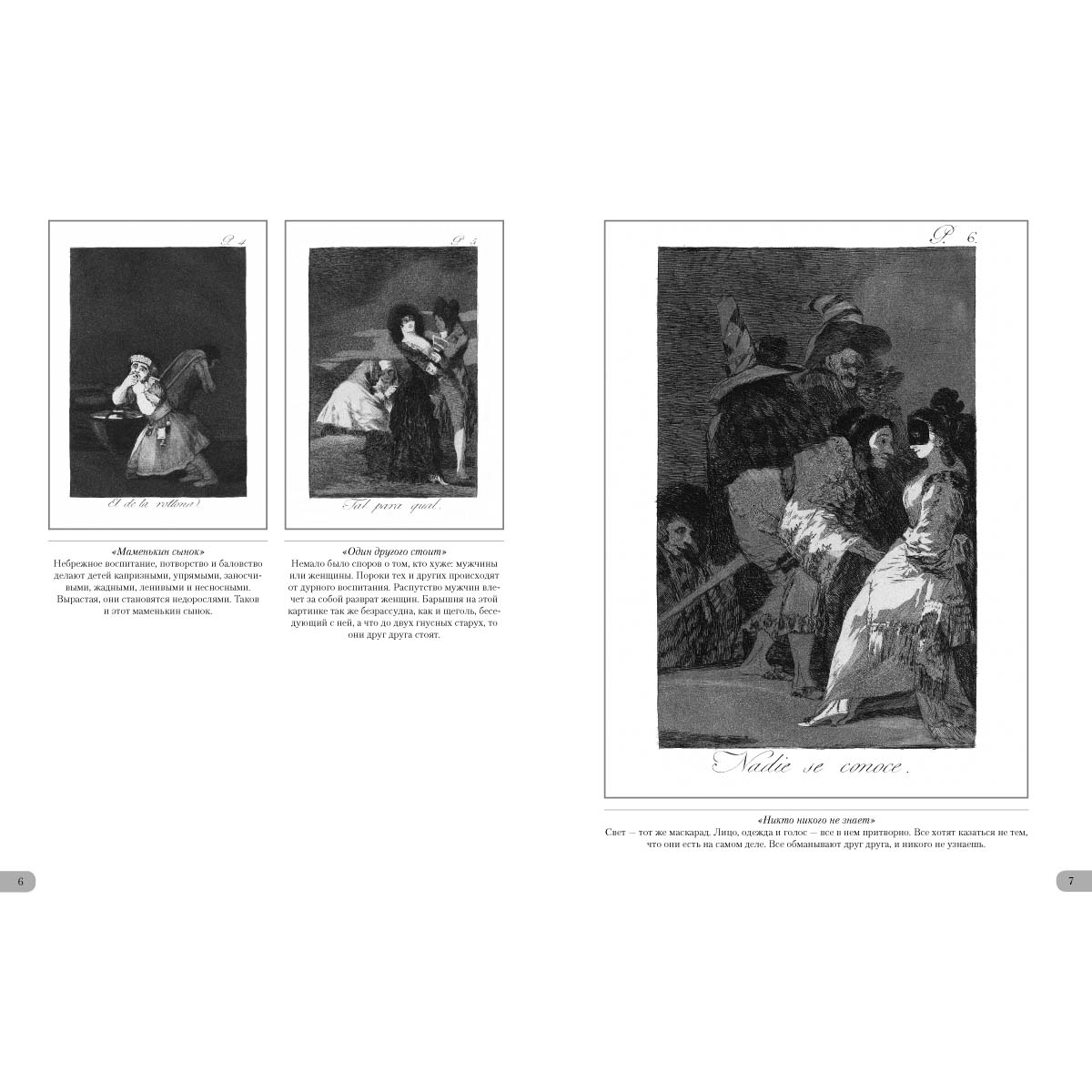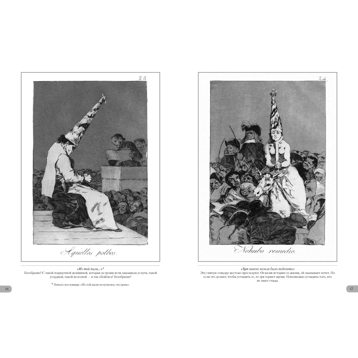 Великий испанский художник Франсиско Гойя создал уникальную серию офортов «Капричос», в которой поведал о реалиях современной ему Испании. Острая, даже гротескная форма его офортов высмеивала пороки общества. Художник не церемонился, показывая лицемерие дворянства, церковь с ее страшной инквизицией. В метафорической форме высмеивал он и человеческие пороки, поднимаясь до высоких обобщений. Работа, потребовавшая от художника невероятных усилий, приобрела характер острой социальной сатиры. По решению короля и требованию церкви гениальная работа во времена, когда жил великий мастер, полностью свет так и не увидела.