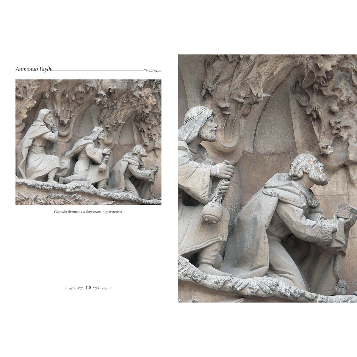 Альбом знакомит с творчеством каталонского архитектора Антонио Гауди. Истинный сын эпохи, он в своих блистательных проектах пролагал собственные пути в искусстве, выражая иллюзии и фантазии нового века. Он стал, по мнению современников, настоящим «гением модерна». Переплет ручной работы. Натуральная переплетная кожа. Каптал из шелковых нитей. Ляссе шелковое. Обрез торшонированный красной фольгой. Украшение переплета: тиснение полиграфической фольгой, фигурная вставка покрытая смолой.