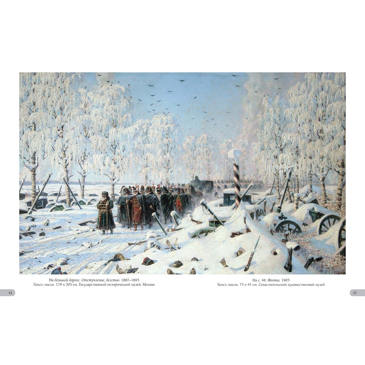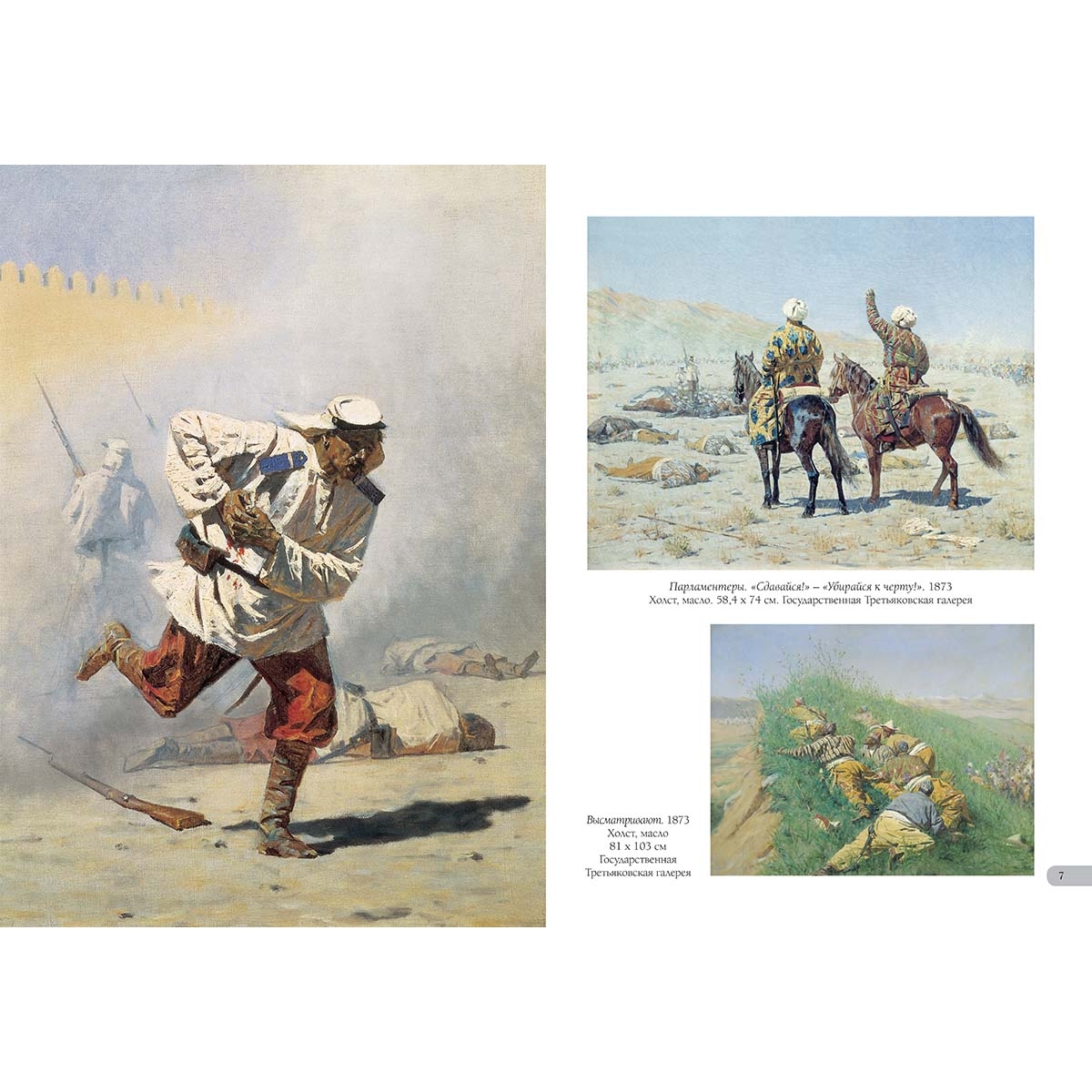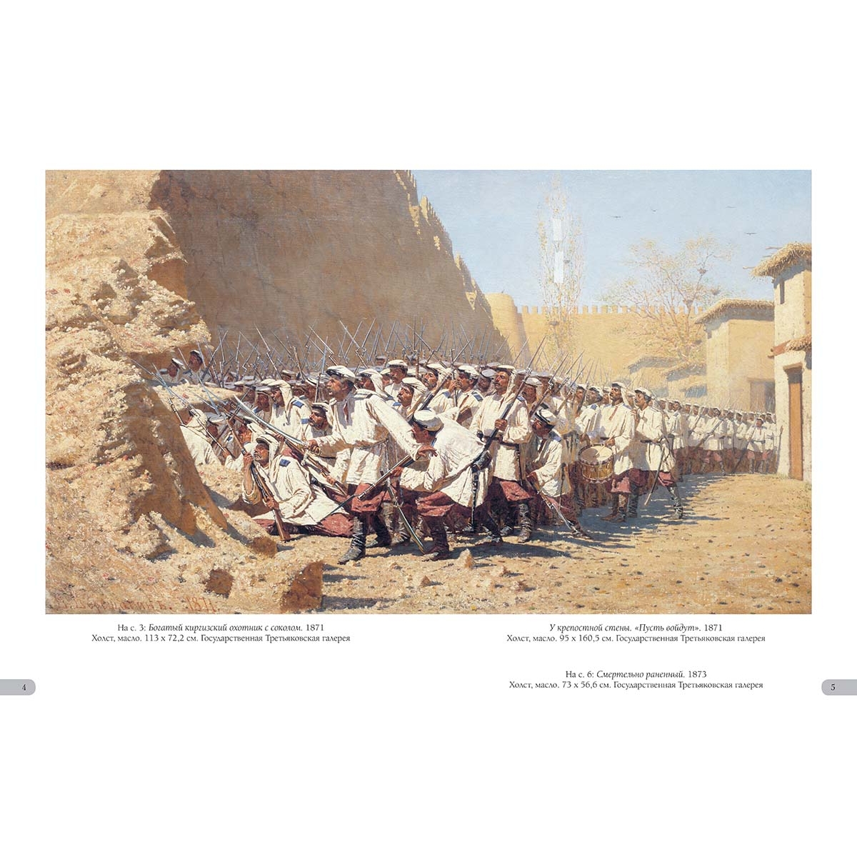ВЕРЕЩАГИН, ВАСИЛИЙ «В штыки! Ура, ура!» (Атака). 1887–1895 41 «Не замай – дай подойти!». 1887–1895 42 «С оружием в руках – расстрелять!». 1887–1895 43 Апофеоз войны. 1871 14–15 Богатый киргизский охотник с соколом. 1871 3 В Иерусалиме. Царские гробницы. 1884 (1885?) 34 В покоренной Москве (Поджигатели, или Расстрел в Кремле). 1897–1898 38 Военный поход. 1878–1881 30 Всадник-воин в Джайпуре. Около 1881 21 Высматривают. 1873 7 Два ястреба (Башибузуки). 1878–1879 24 Двери Тимура (Тамерлана). 1872 16 Дервиши в праздничных нарядах. Ташкент. 1870 19 Казнь заговорщиков в России. 1884–1885 35 Караван яков, нагруженных солью, около озера Цо-Морари, на границе Западного Тибета. 1875 23 Конец Бородинского сражения. 1899–1900 38 Людоед. Конец 1870-х – начало 1880-х 9 Мавзолей Тадж-Махал в Агре. 1874–1876 23 Мавзолей Тадж-Махал. 1874–1876 22 Мулла Рахим и мулла Керим по дороге на базар ссорятся. 1873 8 На большой дороге. Отступление, бегство. 1887–1895 44–45 На этапе. Дурные вести из Франции. 1887–1895 39 Нападают врасплох. 1871 8–9 Наполеон и маршал Лористон («Мир во что бы то ни стало!»). 1899–1900 40 Наполеон на Бородинских высотах. Копия начала XX века 36-37 Ночной привал великой армии. 1896–1897 40 Опиумоеды. 1868 18 Падшие герои 25 Парламентеры. «Сдавайся!» – «Убирайся к черту!». 1873 7 Перед атакой. Под Плевной. 1881 26–27 Пикет на Балканах. Около 1878 31 Пикет на Дунае. 1878–1879 24 Победители. 1878–1879 27 Побежденные. Панихида. 1878–1879 28–29 После атаки. Перевязочный пункт под Плевной. 1881 26 После неудачи. 1868 13 После удачи. 1868 12 Представляют трофеи. 1872 11 Продажа ребенка-невольника. 1872 20 Распятие на кресте у римлян. 1887 35 Смертельно раненный. 1873 6 Торжествуют. 1872 10 У дверей мечети. 1873 17 У крепостной стены. «Пусть войдут». 1871 4–5 Шипка-Шейново. Скобелев под Шипкой. 1878–1879 32–33 Японка. 1903 46 КРАМСКОЙ, ИВАН Портрет В.В. Верещагина (не завершен). 1883 2