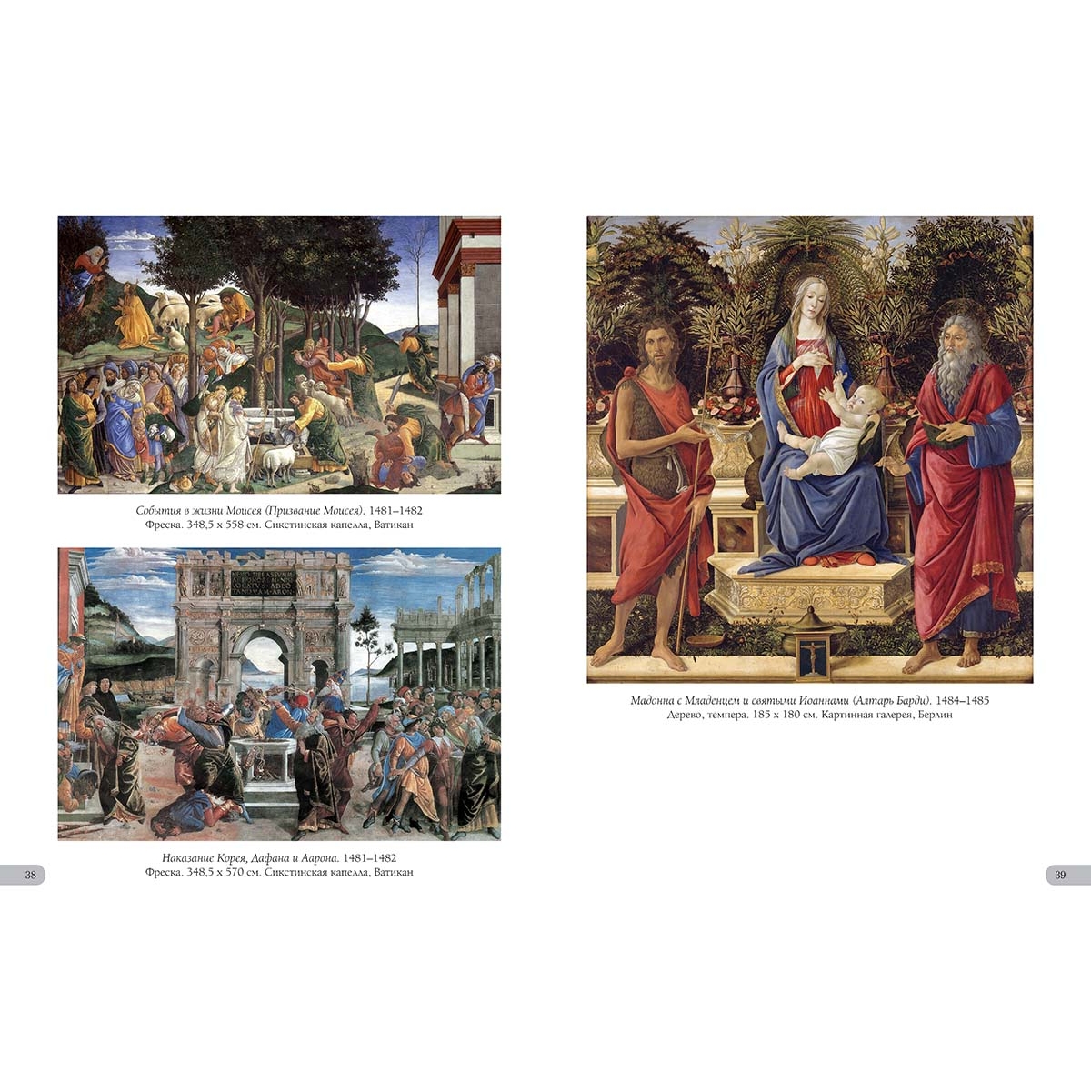 - Список художников и их полотен или именной указатель (если есть) УКАЗАТЕЛЬ ПРОИЗВЕДЕНИЙ Автопортрет. Около 1476 3 Благовещение. Около 1489–1490 40 Венера и Марс. Около 1485 36 Весна. Около 1480 28–29 Возвращение Юдифи в Ветилую. Около 1472 16 Идеализированный портрет дамы (Портрет Симонетты Веспуччи в образе нимфы). Около 1480 32 Клевета (Основана на работе Апеллеса). Около 1496–1497 42–43 Мадонна во славе с Серафимом. Около 1469–1470 8 Мадонна на троне с четырьмя ангелами и святыми (Алтарь Святого Варнавы). Около 1490 41 Мадонна с гранатом. Около 1487 34 Мадонна с Младенцем и святыми Иоаннами (Алтарь Барди). 1484–1485 39 Мадонна с Младенцем и юным Иоанном Крестителем. 1490–1495 26 Мадонна с Младенцем и юным Иоанном Крестителем. 1490–1500 27 Мадонна с Младенцем (Мадонна с книгой). Около 1480 21 Мадонна с Младенцем и юным Иоанном Крестителем. Около 1468 9 Мадонна с Младенцем и ангелами (Мадонна дель Магнификат). 1483 35 Мадонна с Младенцем и ангелами. Около 1465–1470 6 Мадонна с Младенцем и ангелом. Около 1465–1466 4 Мадонна с Младенцем и ангелом. Около 1470 11 Мадонна с Младенцем и двумя ангелами. Около 1470 10 Мадонна с Младенцем и поющими ангелами. Около 1477 20 Мадонна с Младенцем и пятью ангелами. Около 1470 13 Мадонна с Младенцем и шестью святыми (Алтарь Сант Амброджо). Около 1470 12 Мадонна с Младенцем, двумя ангелами и юным святым Иоанном Крестителем. Около 1465–1470 5 Мадонна с Младенцем. Около 1465–1470 7 Мистическое Рождество. 1500 46 Наказание Корея, Дафана и Аарона. 1481–1482 38 Нахождение тела Олоферна, обезглавленного Юдифью. Около 1470–1472 17 Оплакивание мертвого Христа (Пьета). 1490–1495 45 Оплакивание Христа. Около 1495–1500 44 Паллада и кентавр. Около 1482 33 Поклонение волхвов. Около 1476 18 Поклонение волхвов. Около 1478–1482 25 Портрет Джулиано де Медичи. Около 1478–1485 24 Портрет молодого человека. Около 1480–1485 14 Портрет молодой женщины. Около 147(8?)5 23 Портрет мужчины с медалью Козимо Старшего. Около 1474 15 Рождение Венеры. Около 1484–1486 36 Святой Себастьян. 1474 22 События в жизни Моисея (Призвание Моисея). 1481–1482 38