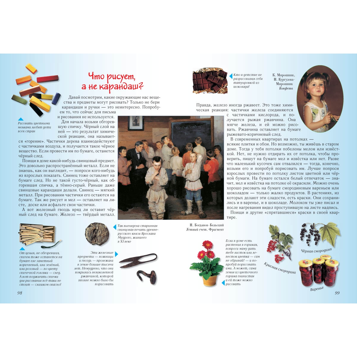 «Занимательная химия» в рамках проекта «Моя первая книга» продолжает цикл книг, которые помогут детям не только расширить кругозор, но и усвоить начальные знания по предметам, изучаемым в школе: биологии, географии, химии, физике, математике и др. Написанная в увлекательной и доступной форме, книга вызовет интерес у детей не только к чтению, но и к «научной работе» — постановке несложных химических опытов под руководством взрослых, разовьет в них наблюдательность и логическое мышление.