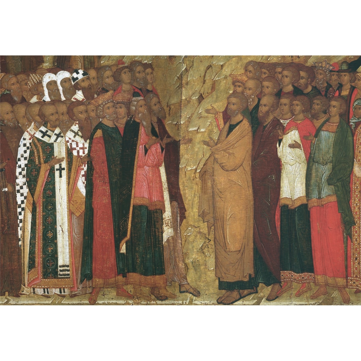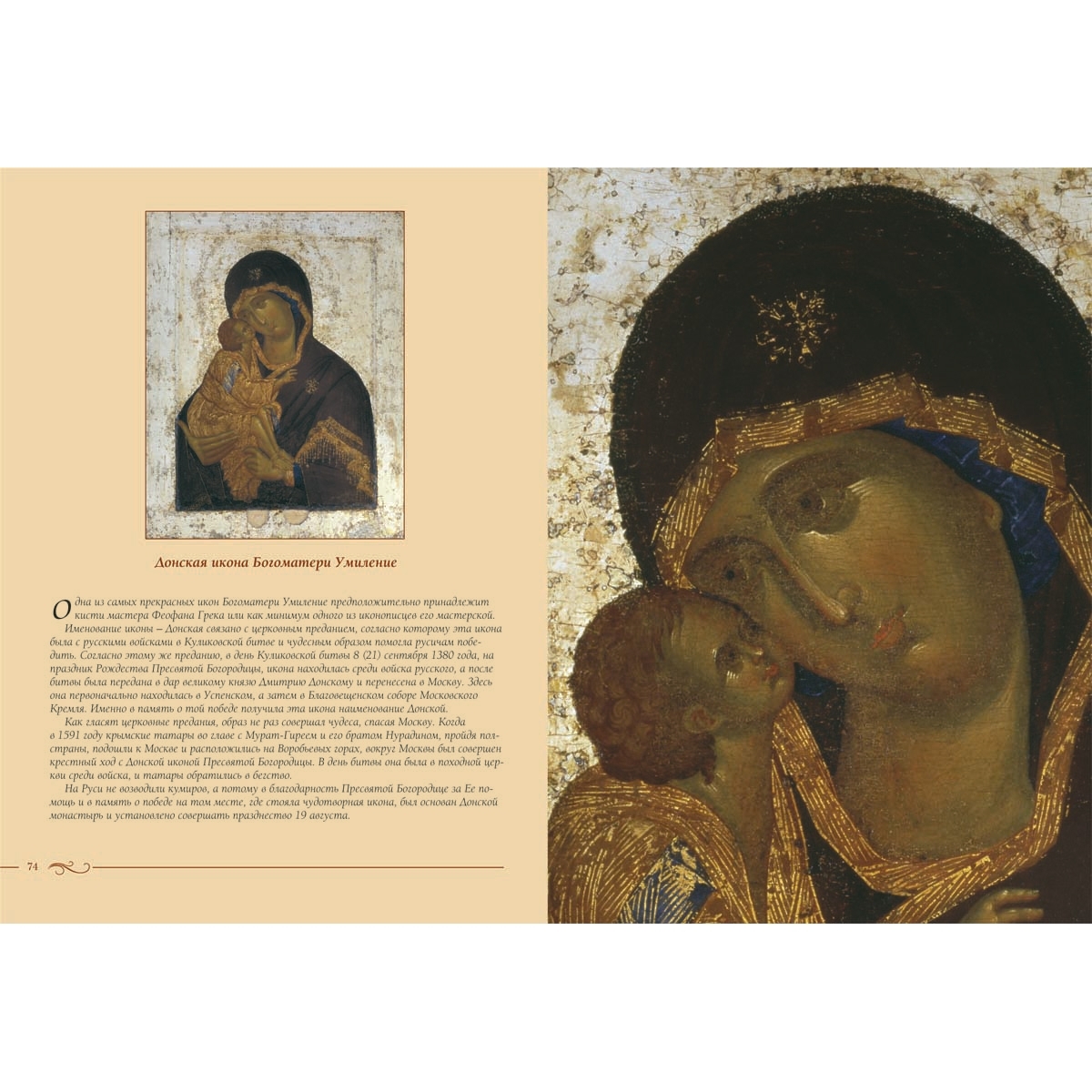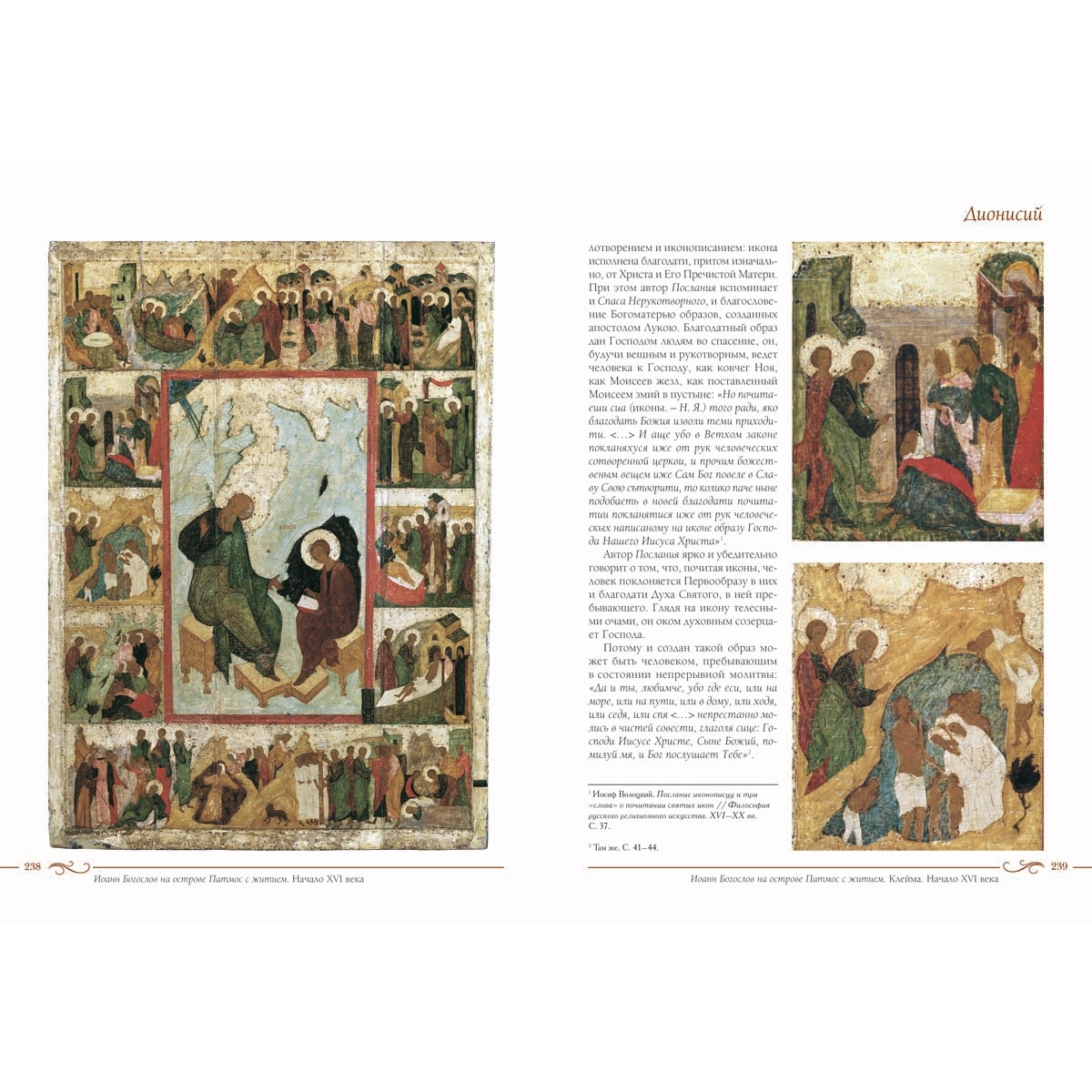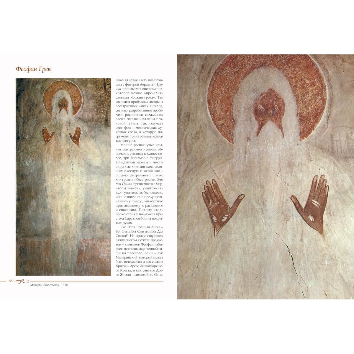 Переплет ручной работы. Натуральная переплетная кожа. Каптал из шелковых нитей. Ляссе шелковое. Обрез торшонированный золотой фольгой. Украшение переплета: тиснение полиграфической фольгой, полиграфическая вставка. Три светлых имени осеняют золотой век русского иконописания. Три светоносца – Феофан Грек, Андрей Рублев, Дионисий. Мы знаем о них – соработниках Духа Святого – до обидного мало. Они не думали о славе у потомков, но трудились во славу Божию. Их души растворились в свете созданий их кисти. Как возгорается от свечи свеча, так и они зажигали во тьме своего времени пламя благодатных образов, несших людям веру, надежду и любовь. И сегодня иконы, осененные именами Феофана Грека, Андрея Рублева и Дионисия, дарят свет и тепло каждому, кто с открытым сердцем остановится перед ними в безмолвии несуетного созерцания. Эта книга, прекрасно изданная, представляет собой универсальный подарок для детей и взрослых, для верующих и неверующих, поскольку сама икона универсальна: будучи носителем благодати, образом священным, она в то же время, писанная великими мастерами, представляет собою огромную художественную ценность и входит в сокровищницу национальных ценностей России.