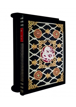 Французский цельнокожаный переплет ручной работы на шнурах. Натуральная переплетная кожа. Цвет Черный янтарь. Форзац составной на кожаной слизуре. Дизайнерская бумага. Каптал двойной наборный, ручное плетение из шелковых нитей. Обрез торшонированный комбинированной фольгой. Ляссе шелковое. Украшение переплета: тиснение полиграфической фольгой, блинтовое тиснение. Ювелирные накладки: Художественное литье-латунь, серебрение, золочение. Полировка. Ювелирные вставки: натуральные камни, огранка кабошон, жемчуг. Сотни цветных иллюстраций - старинные гравюры и другие произведения китайского изобразительного искусства - наиболее ярко отражают древнюю культуру Поднебесной империи. Издание включает жизнеописание Конфуция, философский трактат "Лунь-юй", содержащий афоризмы и высказывания знаменитого философа, разнообразные комментарии и варианты перевода. |