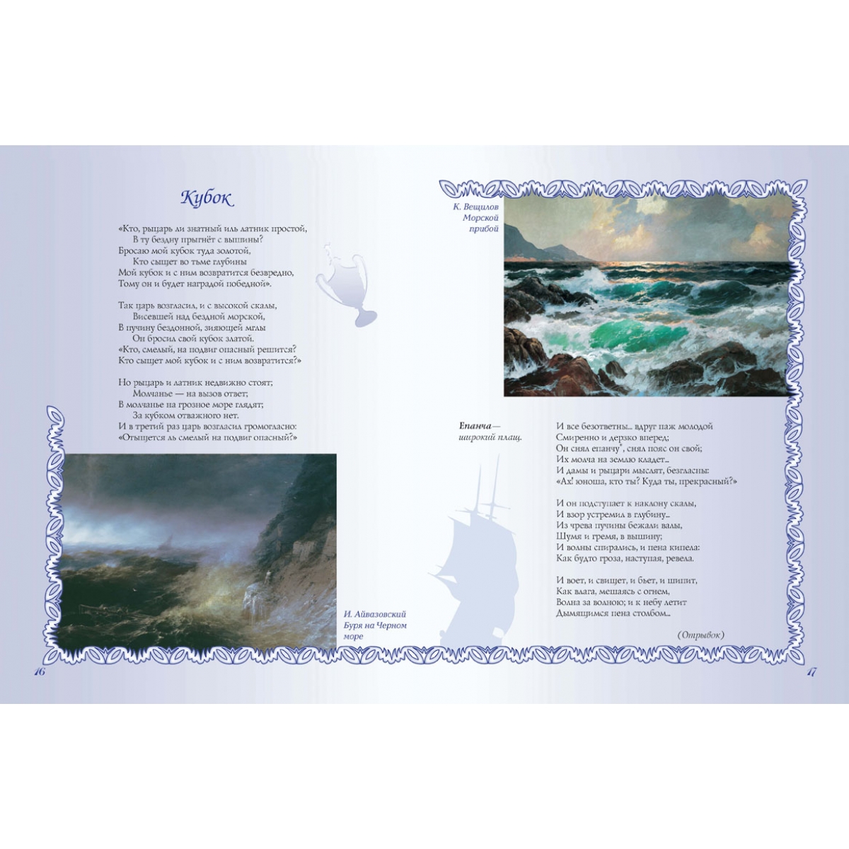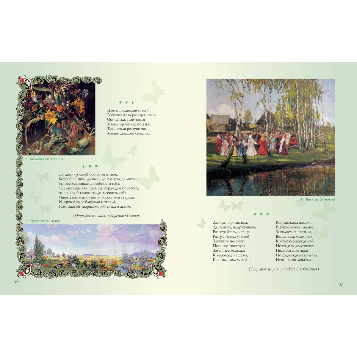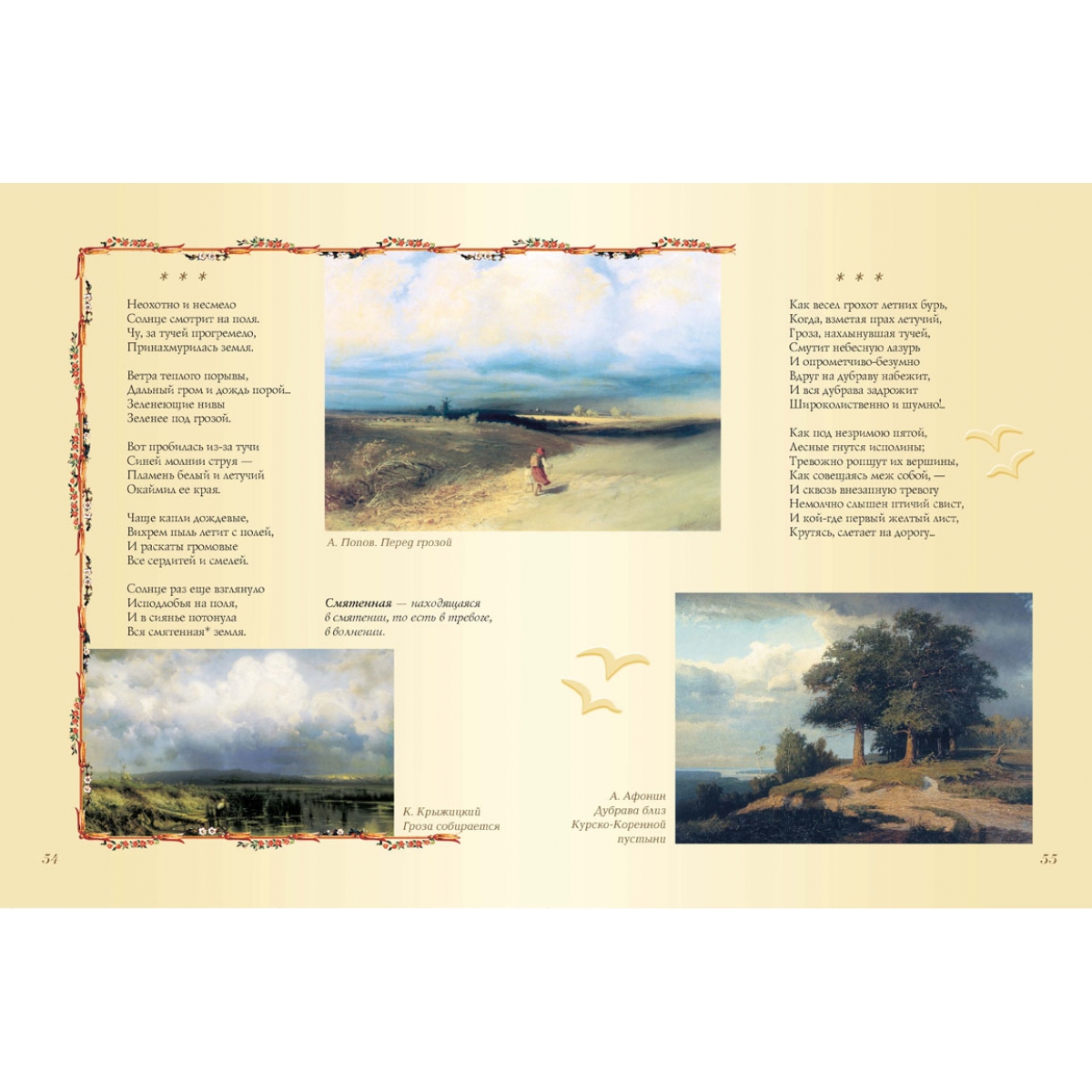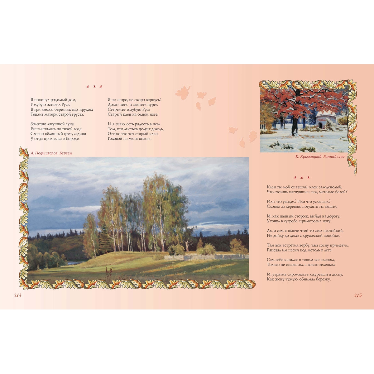 Большинство стихотворений в сборнике – из школьной программы. Такое своеобразное «собрание сочинений» поможет школьникам найти необходимые для обучения литературе поэтические произведения, что называется, «не выходя из дому». Сборник стихов великих русских поэтов сделан с особой тщательностью. В нем максимально учтены интересы наших читателей. Стихи отобраны из собраний сочинений согласно возрасту любителей поэзии, биографии авторов расширят представление ребенка о жизни поэта, поскольку в них уделено внимание детству будущих гениев. Пояснения к тексту, порой расширенные, вводят ребенка в атмосферу далекого времени. Уникально оформление книги. Картины русских художников дают углубленное представление о времени: о нем рассказывают мастера кисти – люди с обостренным восприятием жизни. В книге также использованы интересные оформительские приемы: сложный фон, цветные развороты и проч. Надеемся, что книга украсит домашнюю библиотеку – и в прямом, и переносном смысле.