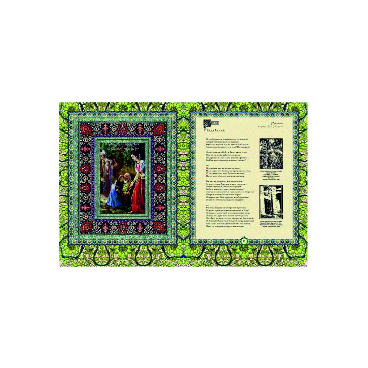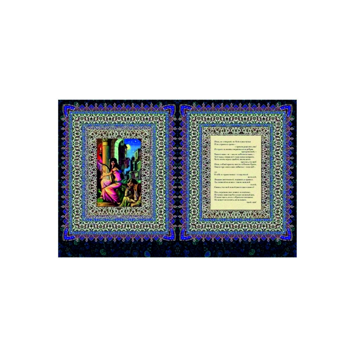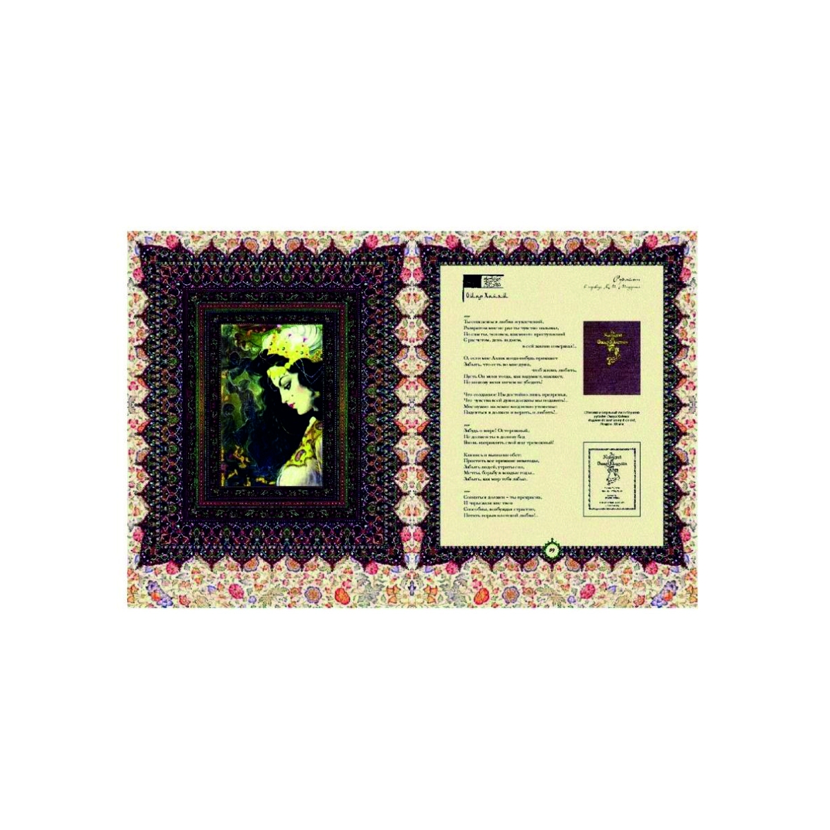 Французский цельнокожаный переплет ручной работы на шнурах. Натуральная переплетная кожа. Цвет Темно-зеленый. Форзац составной на кожаной слизуре. Каптал двойной наборный, ручное плетение из шелковых нитей. Обрез торшонированный золотой фольгой. Ляссе шелковое. Украшение переплета: тиснение полиграфической фольгой. Ювелирные накладки: Художественное литье-латунь, золочение. Ювелирные вставки: натуральные камни, фианиты. Подарочный футляр. «Рубайят» Омара Хайяма – собрание восточной мудрости в переводах И.И. Тхоржевского и прочих известных русских поэтов конца XIX – начала ХХ века. В издание включены в переводах Ф.Э, Корша и других русских поэтов и произведения персидских стихотворцев X–XVI веков: ИбнСины, АбуСеида, Хафиза, Руми, Низами, Саади, Хакани. Стихи сопровождают сотни иллюстраций: Мохаммада Таджвида к «Рубайят» Омара Хайяма и стихам Хафиза, опубликованным в Тегеране в середине ХХ века, лучшие иллюстрации западноевропейских изданий конца XIX – начала ХХ века, персидские миниатюры XV–XIX веков, миниатюры кашмирских рукописей XVIII века. Издание дополнено хронологией жизни и творчества О. Хайяма, переводов Рубаи, примечаниями и указателями.