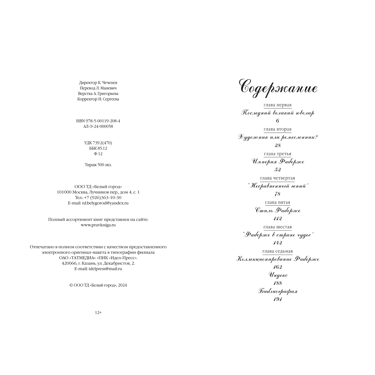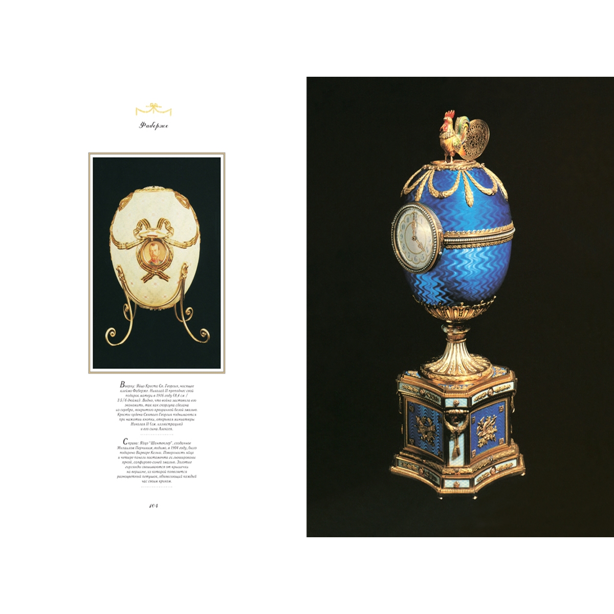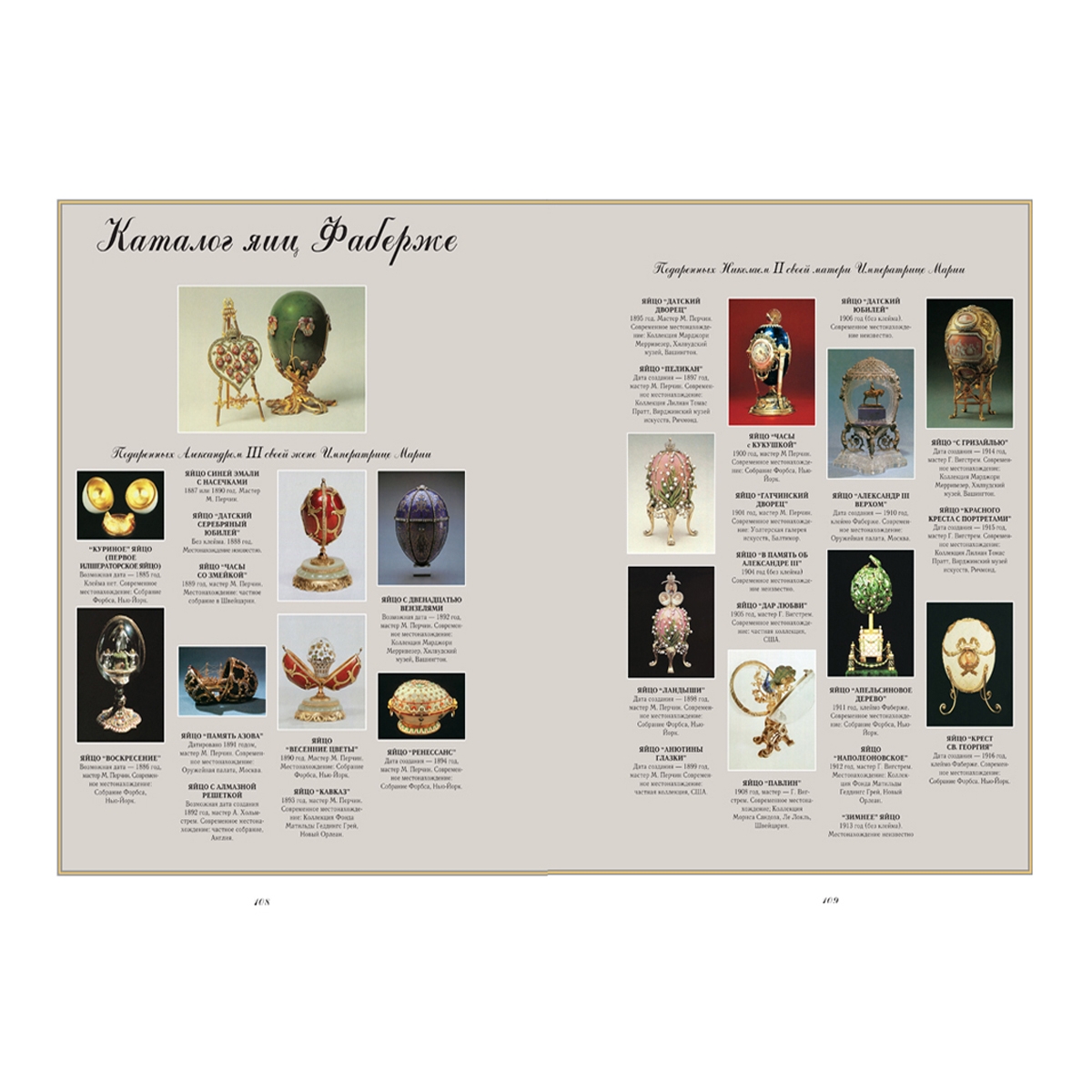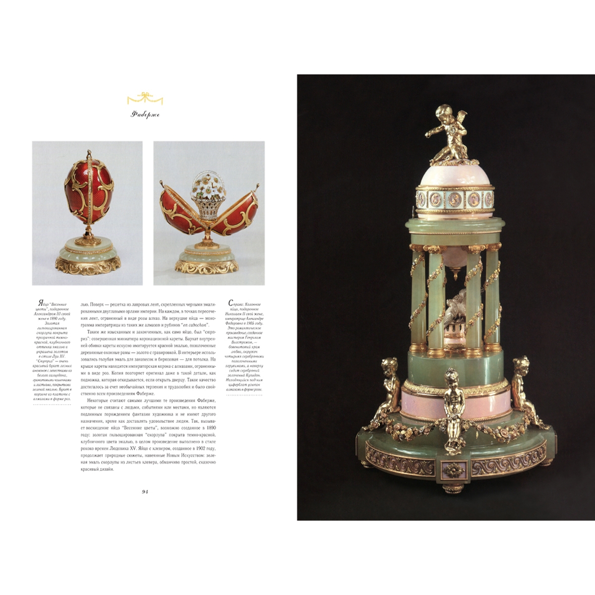 Переплет ручной работы. Натуральная переплетная кожа. Каптал из шелковых нитей. Ляссе шелковое. Обрез торшонированный золотой фольгой. Украшение переплета: тиснение полиграфической фольгой, полиграфическая ламинированная вставка. Самым гениальным ювелиром считается российский мастер конца XX века Петр Карлович Фаберже. В основе работ его мастерской лежала идея о том, что для создания великого произведения искусства ценность материала не должна уступать ценности художественного замысла. Альбом демонстрирует три сотни шедевров из лучших коллекций, ставшие эталонами всего мира драгоценностей.