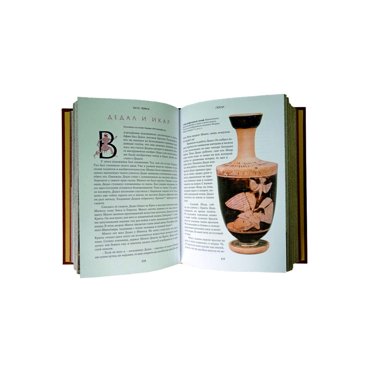 Переплет ручной работы. Переплетная кожа. Каптал из шелковых нитей. Ляссе шелковое. Обрез торшонированный золотой фольгой. Украшение переплета: блинтовое тиснение, тиснение полиграфической фольгой. Увлекательный пересказ античных первоисточников - поэм Гесиода, Овидия, Гомера - делает далекий мир древних греков ближе и понятнее. И пусть не существует крылатых коней, злобных горгон и бессмертных богов на Олимпе, но в греческих мифах отражена жизнь человека, какой она была всегда, и то необъяснимое и неизведанное, к чему мы стремимся и куда хотим вернуться.
