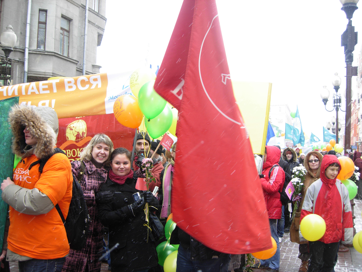 21 марта участники шествия собрались на Старом Арбате, и колонна, украшенная флагами, шарами, транспарантами, стартовала по направлению к Московскому дому книги.