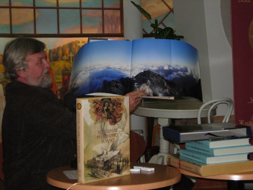 Хождения на Святую Землю» — новое издание, о котором автор более подробно рассказал присутствующим. В этой книге Георгий Николаевич воссоздал атмосферу подлинной, не измененной временем Святой Земли. Для этого он по крупицам собрал лучшее за много веков, что было изображено художниками и написано паломниками о святых для христиан мест Израиля и Палестины. Автор рассказал об истории создания книги, о своей работе над ней. Он также поделился впечатлениями о своем пребывании на Святой Земле и посещении мест, описанных в его книге.