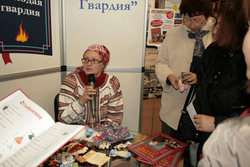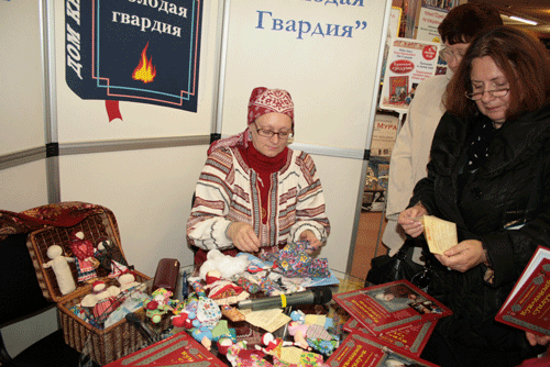 Мастер-класс сразу привлек к себе внимание посетителей. Многих заинтересовала тема русского народного творчества. Большой популярностью пользовалась книга «Кукольный сундучок». Мастера кукольного дела в этнографических поездках собрали информацию о народных тряпичных куклах и подарили ее нам. Представленные в книге схемы и рисунки показывают, как сделать куклу своими руками. Родители покупали издание для своих детей, чтобы вместе с ними обратиться к русской истории, русским традициям. Благодаря этой книге появилась уникальная возможность приобщиться к народной культуре, научиться древнему искусству – своими руками создавать кукольные образы.