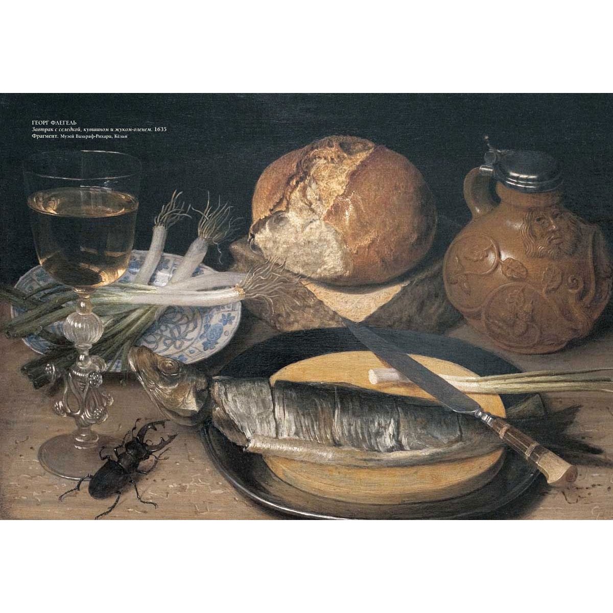 Завтрак с селедкой, кувшином и жуком-оленем. 1635. Фрагмент