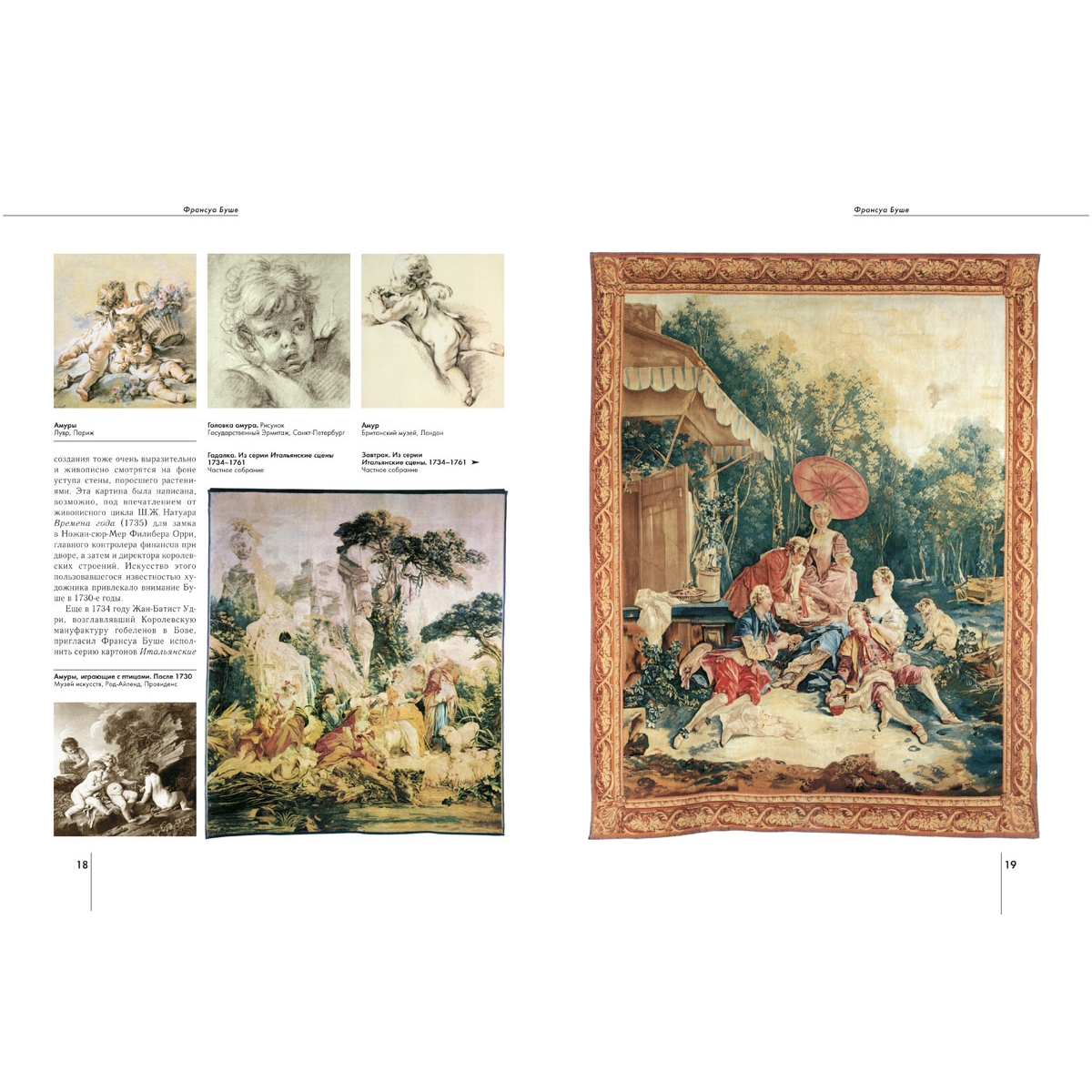 Франсуа Буше (1703–1770) родился в Париже и прожил в этом городе до самой смерти. Буше был необыкновенно работоспособен, а его творческий диапазон – чрезвычайно широк. Он создал многочисленные серии гравюр, иллюстрировал книги Мольера, Боккаччо, Овидия. Он делал декорации для опер и спектаклей, выполнял росписи на фарфоре, расписывал веера, исполнял миниатюры.