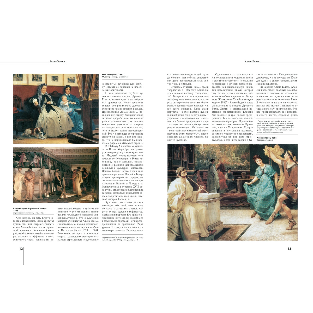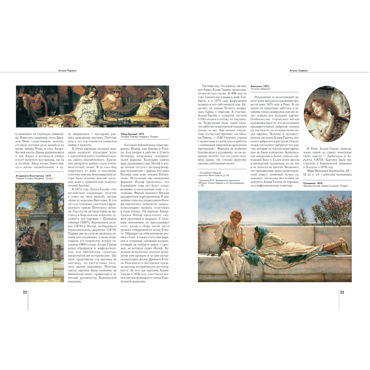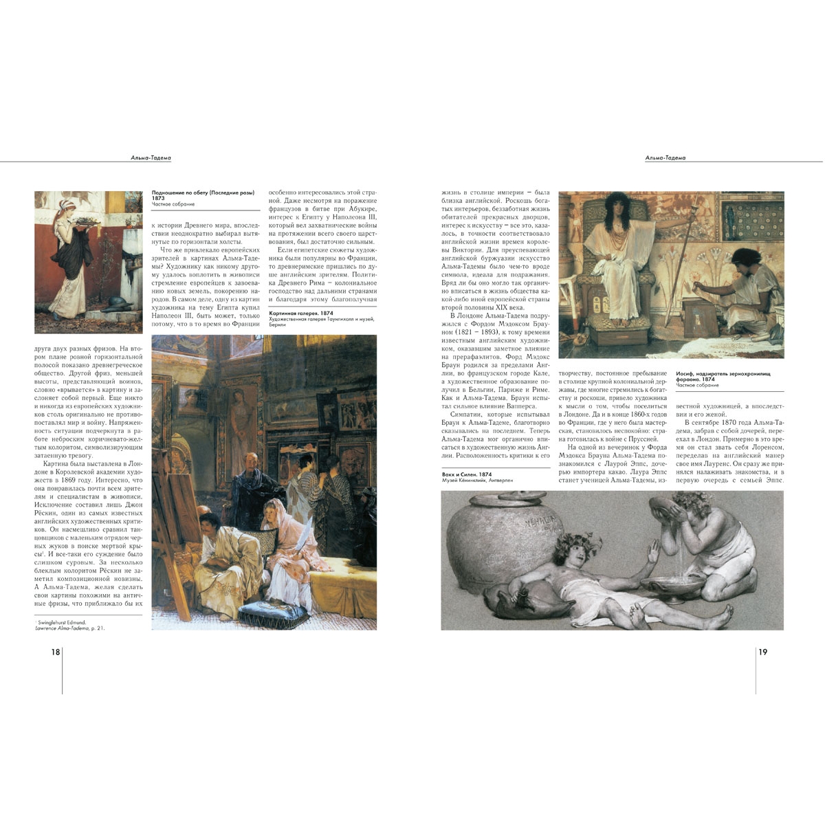 Голландец по происхождению, Альма-Тадема (1836–1912) получил известность как английский художник. Он учился живописи у своих соотечественников – голландских мастеров, и влияние их искусства можно увидеть в его ранних работах.