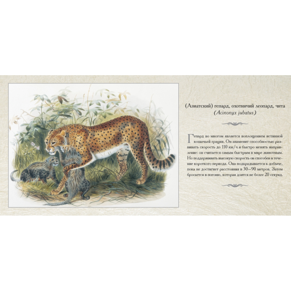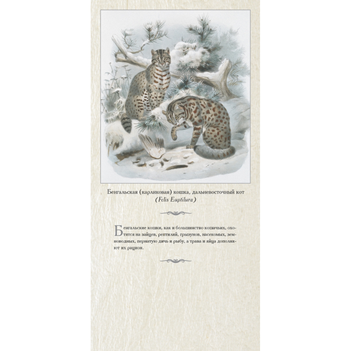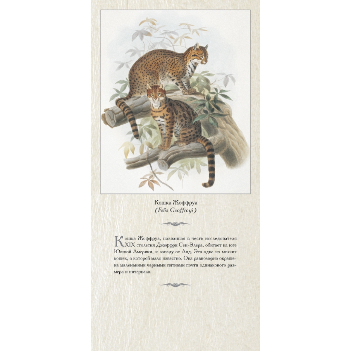 Набор буклетов из 21 иллюстрации, не издававшихся ранее в современной России. Автор иллюстраций ученый-зоолог Даниэль Жиро Элиот, расскажет об условиях жизни, среде обитания разных видах семейства кошачьих. Великолепное качество иллюстраций и интересный текст, сопровождающий их, никого не оставят равнодушными и будут интересны читателям любого возраста.
