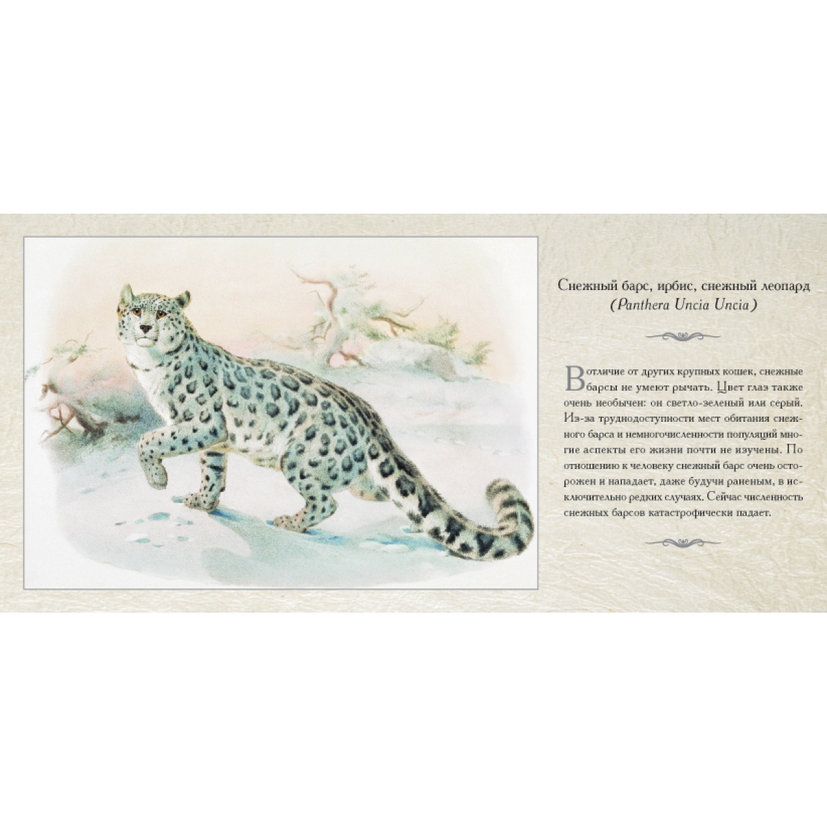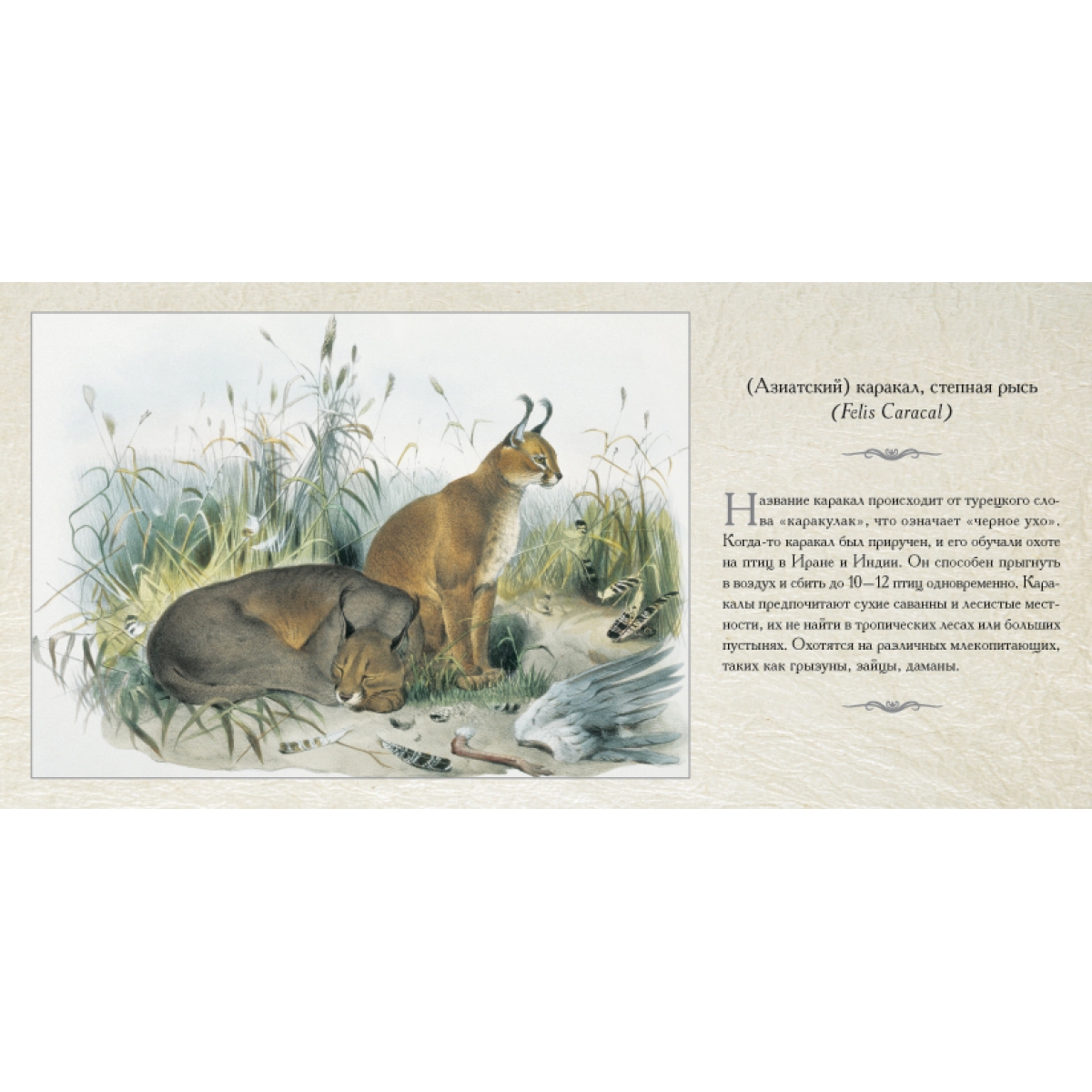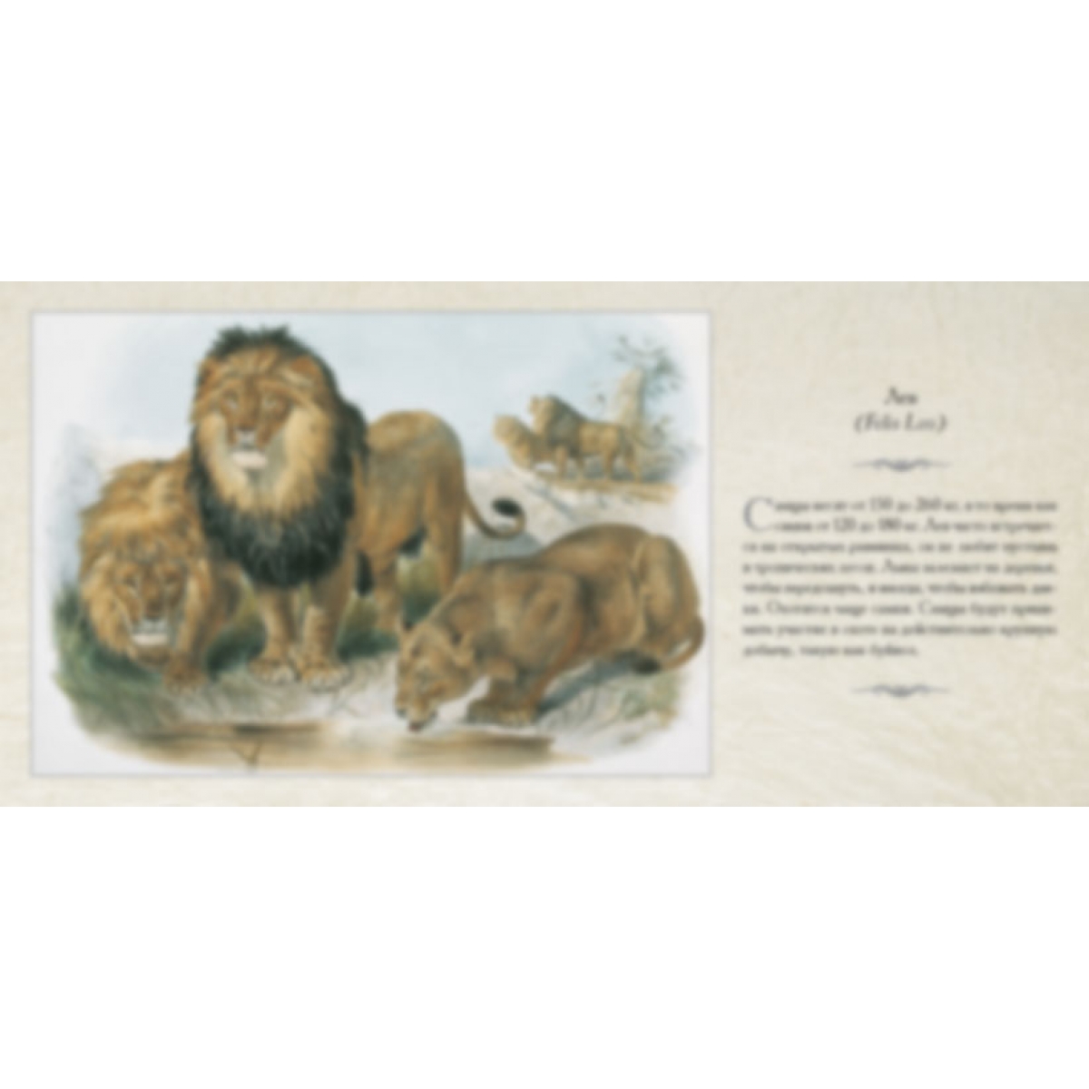 Набор буклетов из 21 иллюстрации, не издававшихся ранее в современной России. Автор иллюстраций ученый-зоолог Даниэль Жиро Элиот, расскажет об условиях жизни, среде обитания разных видах семейства кошачьих. Великолепное качество иллюстраций и интересный текст, сопровождающий их, никого не оставят равнодушными и будут интересны читателям любого возраста.
