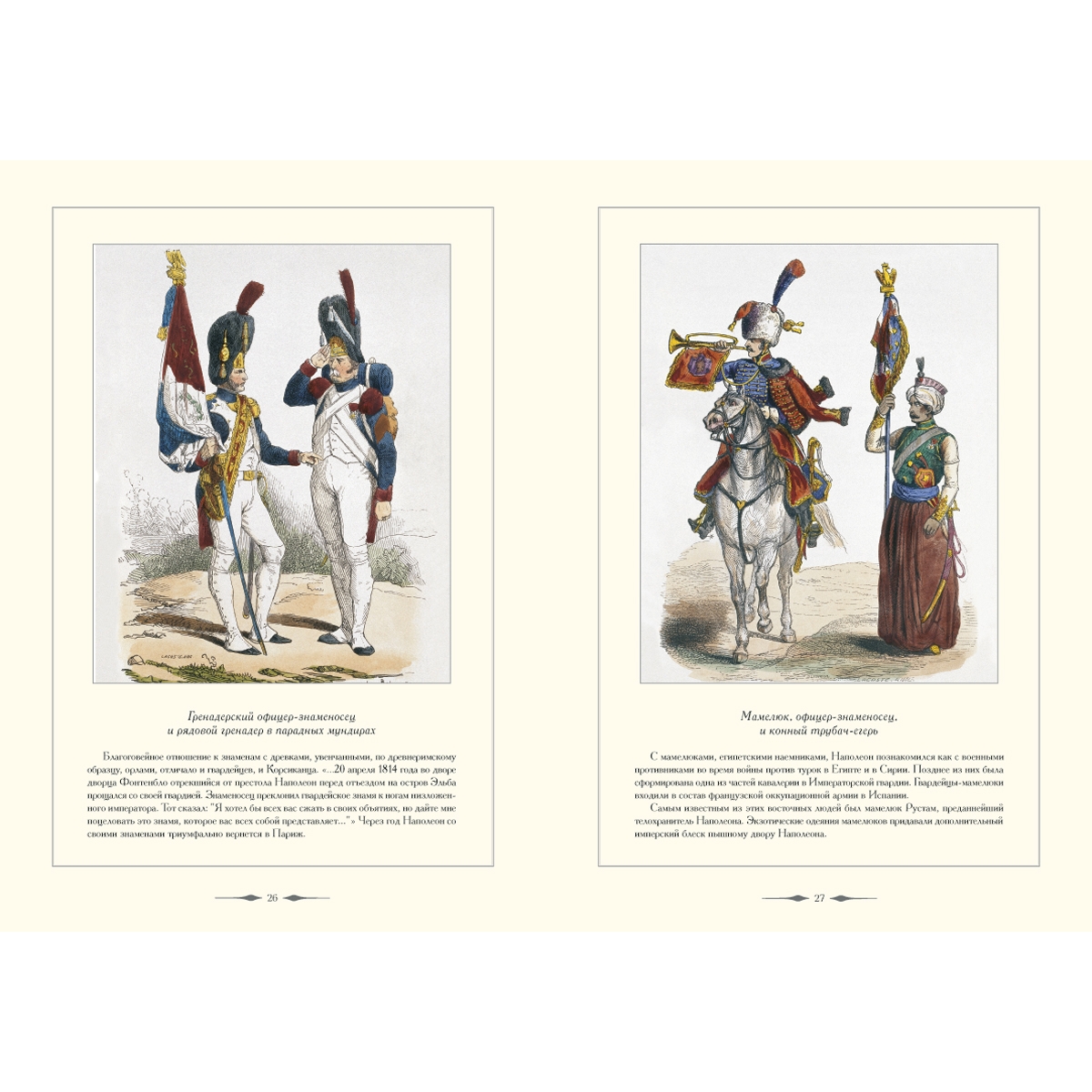 Иллюстрации для настоящего издания взяты из книги Histoire anecdotique, politique et militaire de Garde Imperiale par Emile Marco de Saint-Hilaire, Paris, 1847 (Анекдотическая, политическая и военная история Императорской гвардии, сочинение Эмиля Марка де Сент-Илера, Париж, 1847). Цветные гравюры на дереве исполнены по рисункам художников Белланже, Лами, де Морена и знаменитого баталиста Шарля Верне.