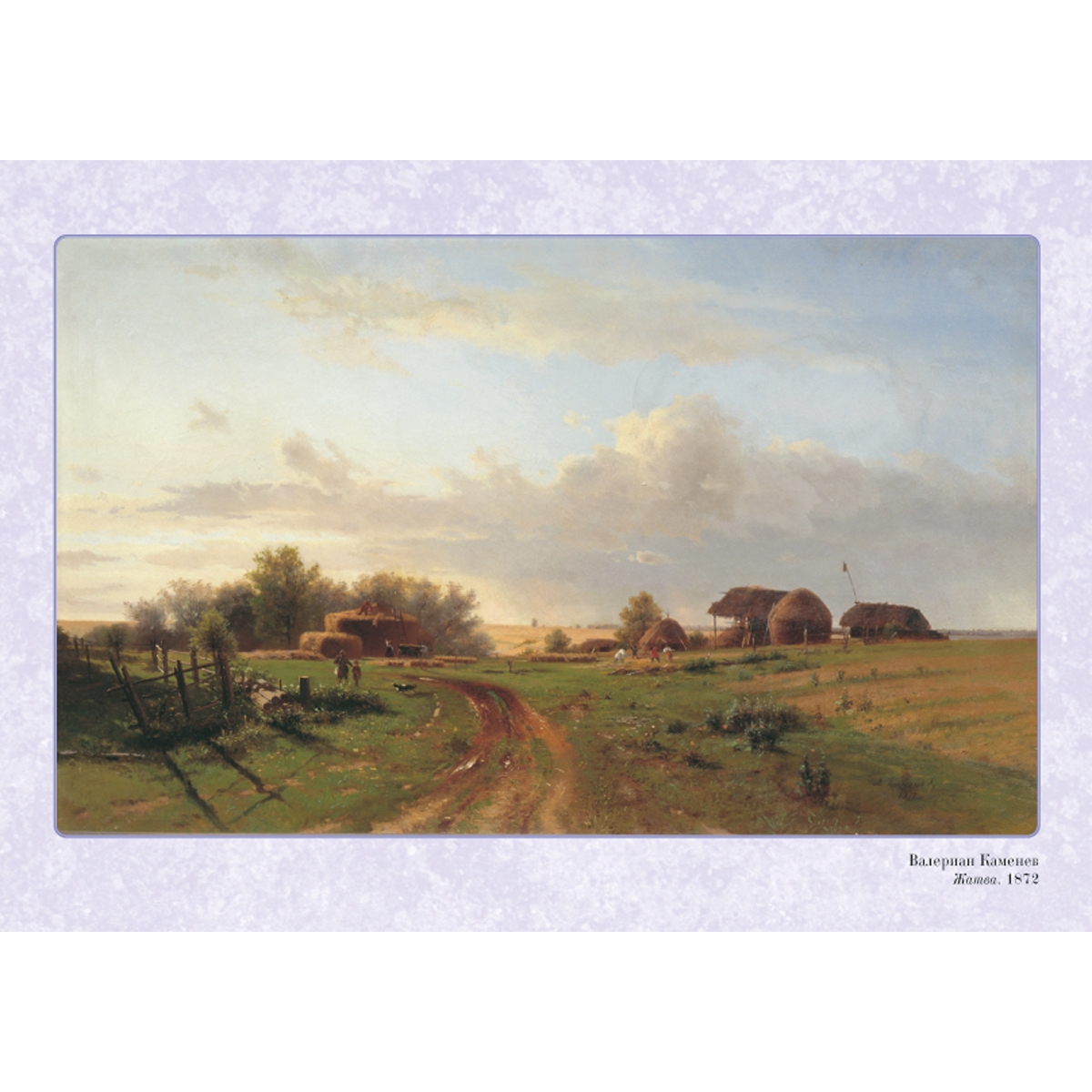 Список художников и их полотен или именной указатель Все самые известные картины великих русских живописцев со-браны в шести выпусках. Великие полотна, которые знакомы нам с детства, выпущены на высоком полиграфическом уровне. Они незаменимы на уроках рисования и русского языка, природоведе-ния и истории. С этого набора мы рекомендуем начать знаком-ство ребенка с прекрасным. Подборка состоит из шести выпусков по 24 репродукции в каждом. Список художников и их полотен или именной указатель - Список художников и их полотен или именной указатель (если есть) Валериан Каменев. Жатва. 1872 Лев Каменев. Саввино-Сторожевский монастырь под Звенигородом. 1860-е Аким Карнеев (Корнеев). Крестины Орест Кипренский. Портрет лейб-гусарского полковника Евграфа Владимировича Давыдова. 1809 Орест Кипренский. Портрет поэта Александра Сергеевича Пушкина. 1827 Орест Кипренский. Портрет Е.А. Телешовой. 1828 Александр Киселев. Осень в лесу. 1908 Михаил Клодт. На пашне. 1872 Михаил Клодт. Лесная даль в полдень. 1878 Алексей Корзухин. Перед исповедью. 1877 Алексей Корзухин. Девичник Константин Коровин. Северная идиллия. 1886 Константин Коровин. Портрет артиста Федора Ивановича Шаляпина. 1911 Иван Крамской. Неизвестная. 1883 Иван Крамской. Христос в пустыне. 1872 Константин Крыжицкий. Ранний снег. 1890-е Борис Кустодиев. Купчиха за чаем. 1918 Борис Кустодиев. Русская Венера. 1925–1926 Борис Кустодиев. Голубой домик. 1920 Борис Кустодиев. Троицын день. 1920 Архип Куинджи. Лунная ночь на Днепре. 1880 Архип Куинджи. Березовая роща. 1901 Лев Лагорио. Дача Лев Лагорио. Лафотенский остров. 1895