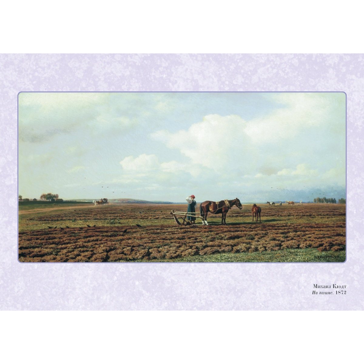 Все самые известные картины великих русских живописцев со-браны в шести выпусках. Великие полотна, которые знакомы нам с детства, выпущены на высоком полиграфическом уровне. Они незаменимы на уроках рисования и русского языка, природоведе-ния и истории. С этого набора мы рекомендуем начать знаком-ство ребенка с прекрасным. Подборка состоит из шести выпусков по 24 репродукции в каждом.