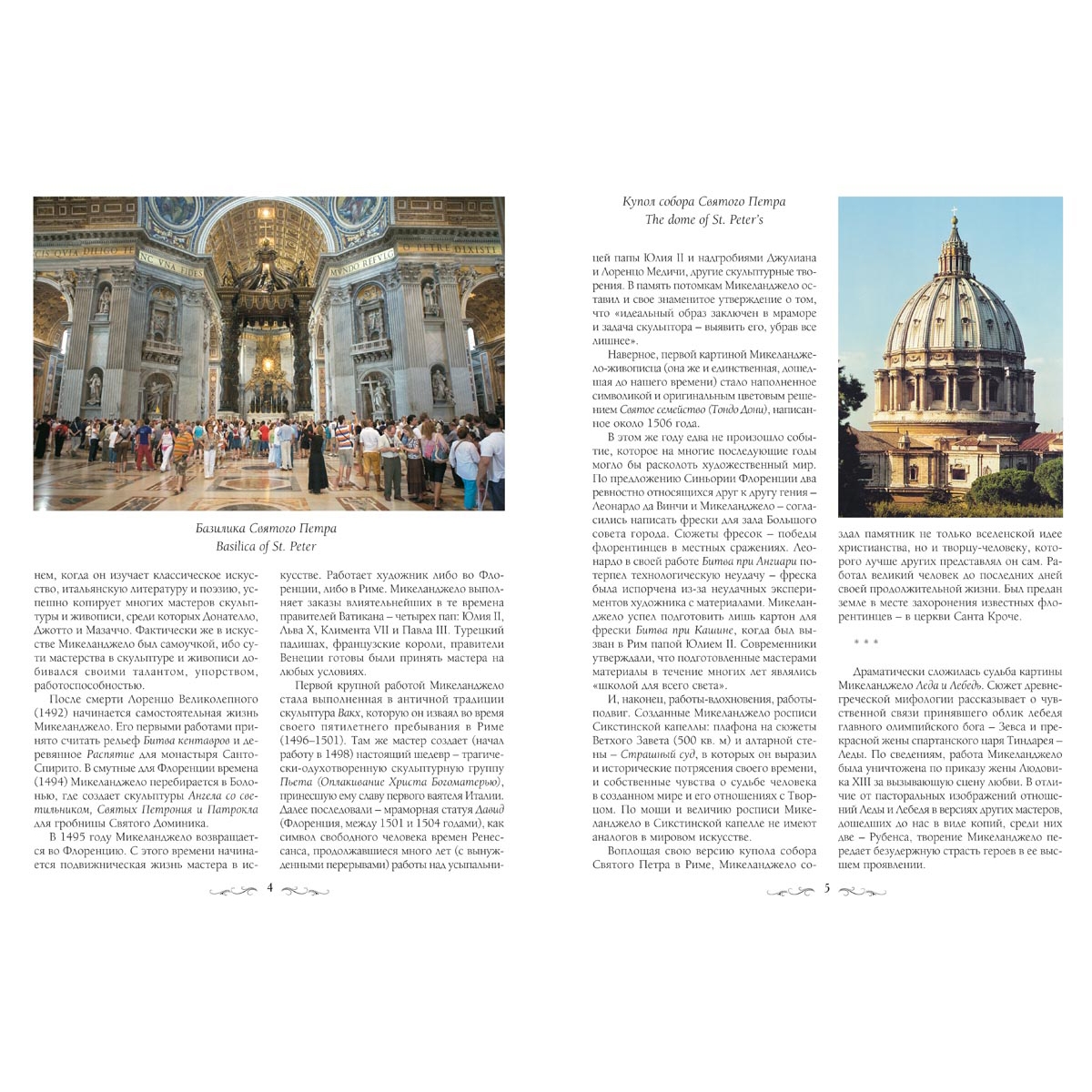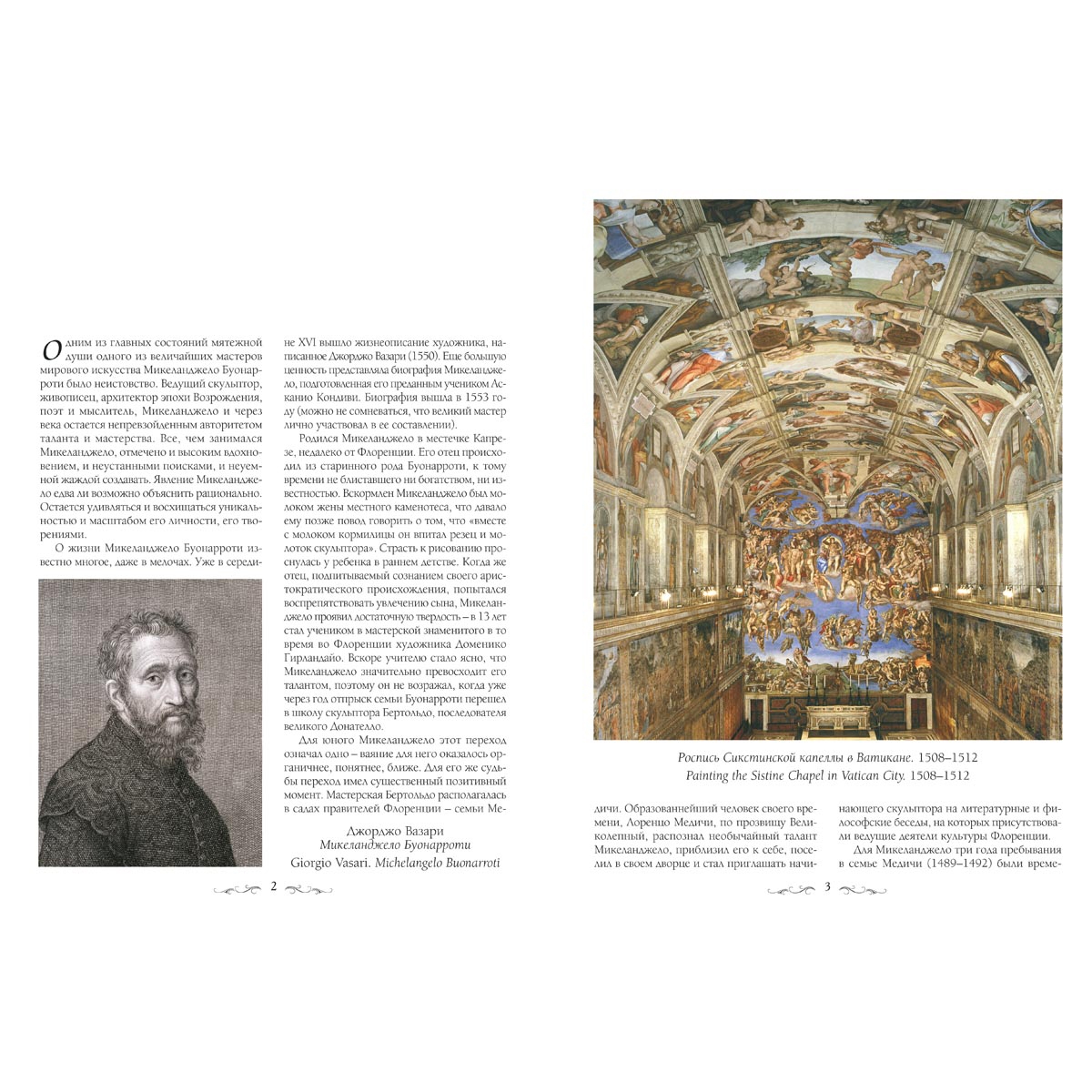 Книга посвящена выдающемуся итальянскому мастеру эпохи Возрождения Микеланджело Буонарроти. Путь в вечность великого художника, скульптора, ярчайшего представителя эпохи Возрождения Микеланджело Буонарроти был щедро усыпан и розами, и шипами. Судьба творца достойна повествования даже в отрыве от несомненной ценности созданных мастером шедевров, среди которых фресковая роспись плафона Сикстинской капеллы и купол собора Святого Петра в Риме. Он прожил долгую жизнь, но не оставил потомства, потому что ничему, кроме искусства, в его сердце не было места. Писатель Ромен Роллан сказал о нем: «Пусть тот, кто не отрицает гений, кто не знает, что это такое, вспомнит Микеланджело. Вот человек, поистине одержимый гением…»