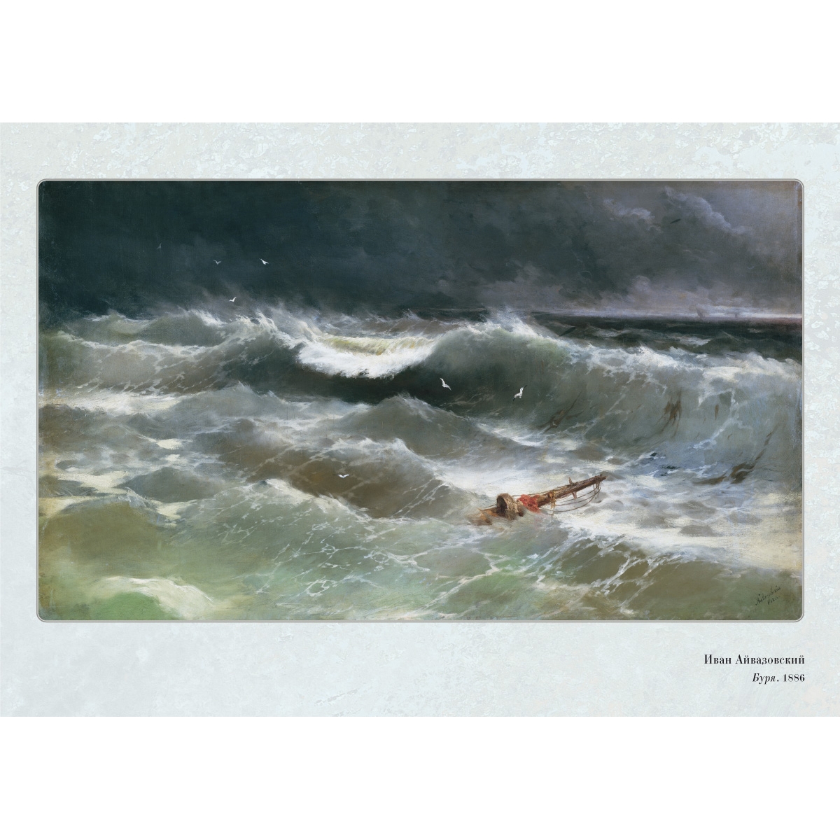 Великий маринист Иван Константинович Айвазовский (1817—1900) с детских лет проявил свои художественные способности. Он закончил Санкт-Петербургскую Академию художеств, и со временем станет одним из самых знаменитых русских художников. Профессор Петербургской Академии художеств, он будет «состоять в академиях» Рима, Парижа, Флоренции, Амстердама, Штутгарта. А еще он получит звание контр-адмирала и станет живописцем Главного морского штаба. В подборке собраны репродукции картин живописца о штормах. Иван Крамской сказал о нем: «...Айвазовский... есть звезда первой величины... и не только у нас, а в истории искусства вообще...»