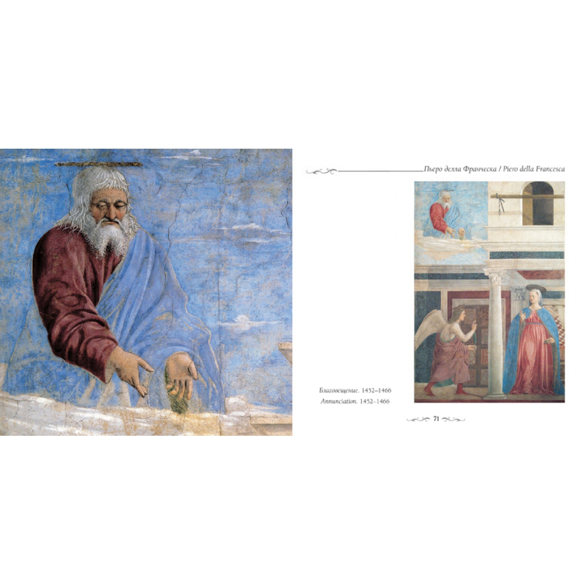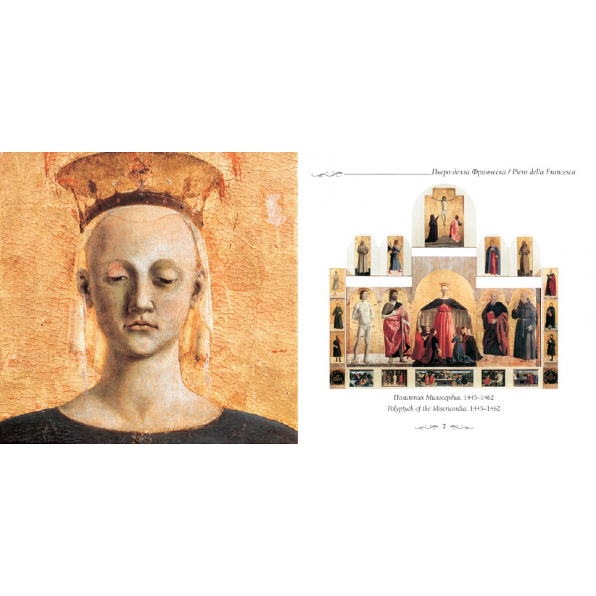 Художественный гений Пьеро делла Франческа (1410/1420–1492) универсален и самобытен. Художник занимает «почетное место в ряду самых известных художников XV века». Живописец, математик, теоретик искусства эпохи Раннего Возрождения, он от природы обладал оригинальным дарованием, упроченным годами напряженной творческой работы. Его «живописный почерк» узнаваем по высоким фигурам, удлиненным линиям шеи и лба, идеализированным чертам лица... Его произведениям присуща величавость и торжественность, его герои – благородны и гармоничны. Светом и красками он достигал «пластической объемности лиц».