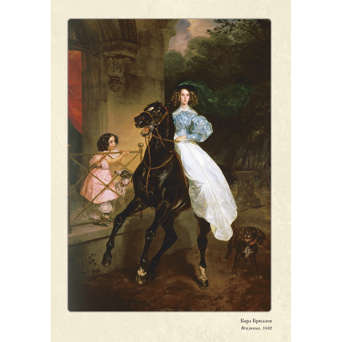 Выдающийся русский исторический живописец К.П. Брюллов жил в первой половине XIX в. Его творчество, выросшее на почве строгого классицизма, одухотворяет прелесть романтизма, оживляет черты зарождающегося в искусстве направления – реализма. О выдающейся картине Последний день Помпеи, которая принесла художнику мировую известность, поэты слагали стихи. Помимо исторических картин, в набор репродукций включены портреты кисти художника – это еще одна составляющая его выдающегося наследия. Он создал галерею портретов русской интеллигенции конца 1830-1840-х годов, в числе которых были В. Жуковский, А. Струговщиков, Ю. Самойлова, И. Крылов, А.К. Толстой, Н. Кукольник и другие. До сих пор привлекает внимание один из самых замечательных и трагичных образов, созданных художником, – его последний автопортрет.