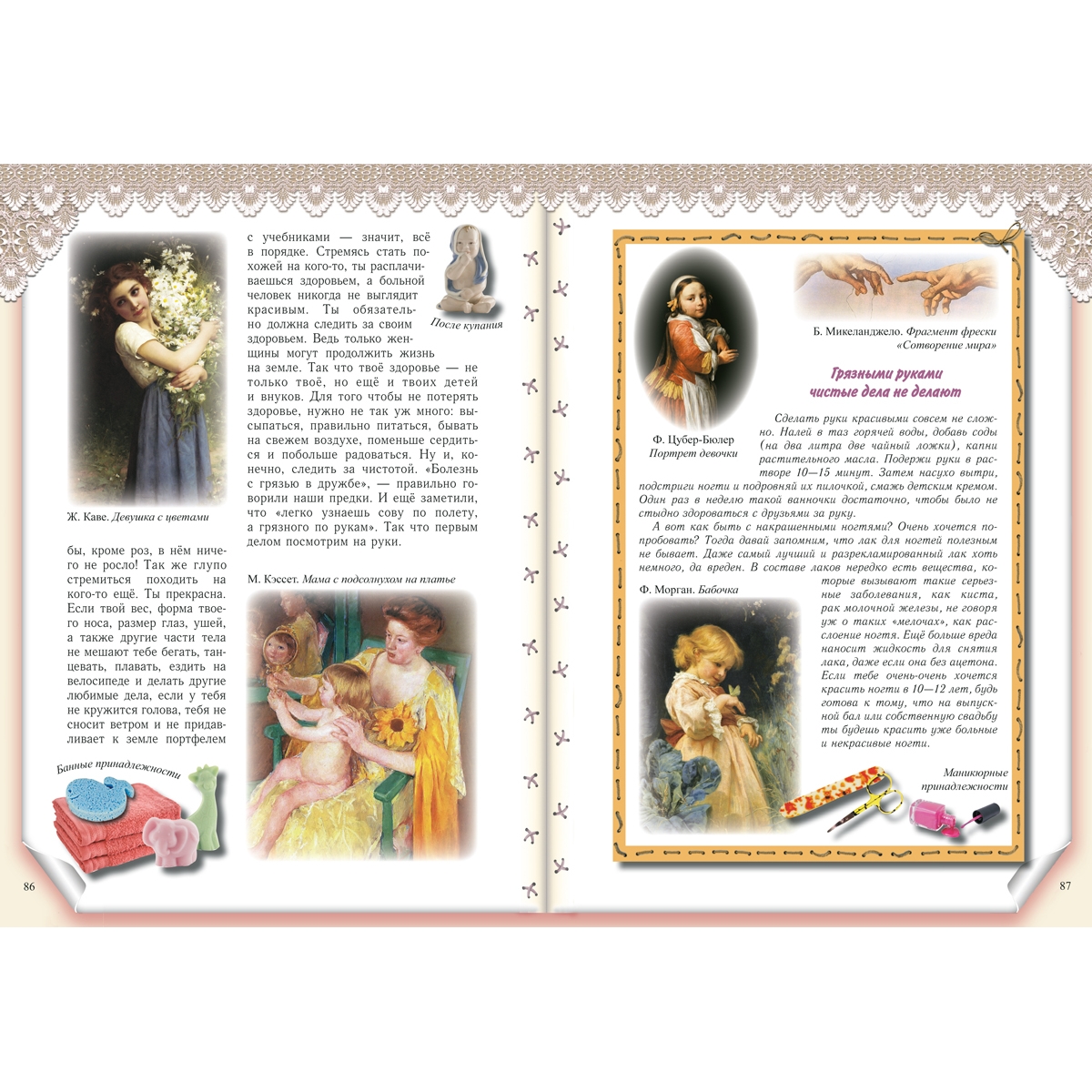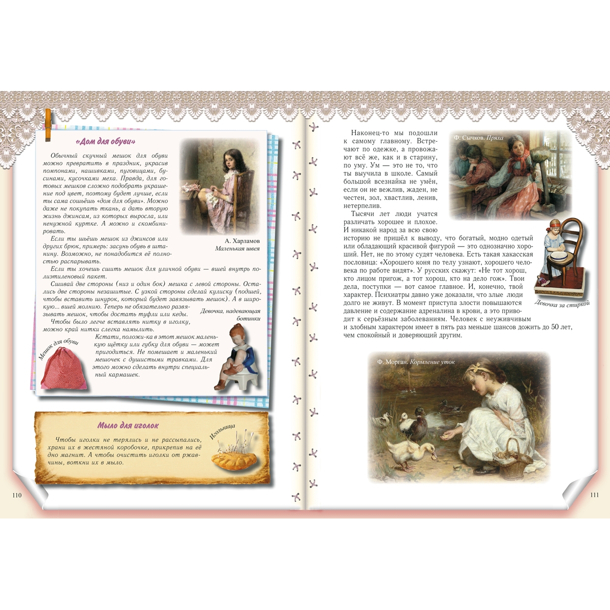 В старину девочек с самого раннего возраста приучали к домашнему хозяйству. Крестьянские семьи были большими, одной маме со всеми делами было не управиться, поэтому старшая дочь была её первой и главной помощницей. Ткать, прясть, вышивать, шить одежду, нянчить маленьких детей, содержать дом в чистоте и порядке, готовить еду и накрывать на стол, принимать гостей, ухаживать за домашними животными – всё умела мамина помощница. Наша книга поможет современным девочкам освоить премудрости домашнего хозяйства и приёма гостей, откроет некоторые секреты красоты и здоровья.