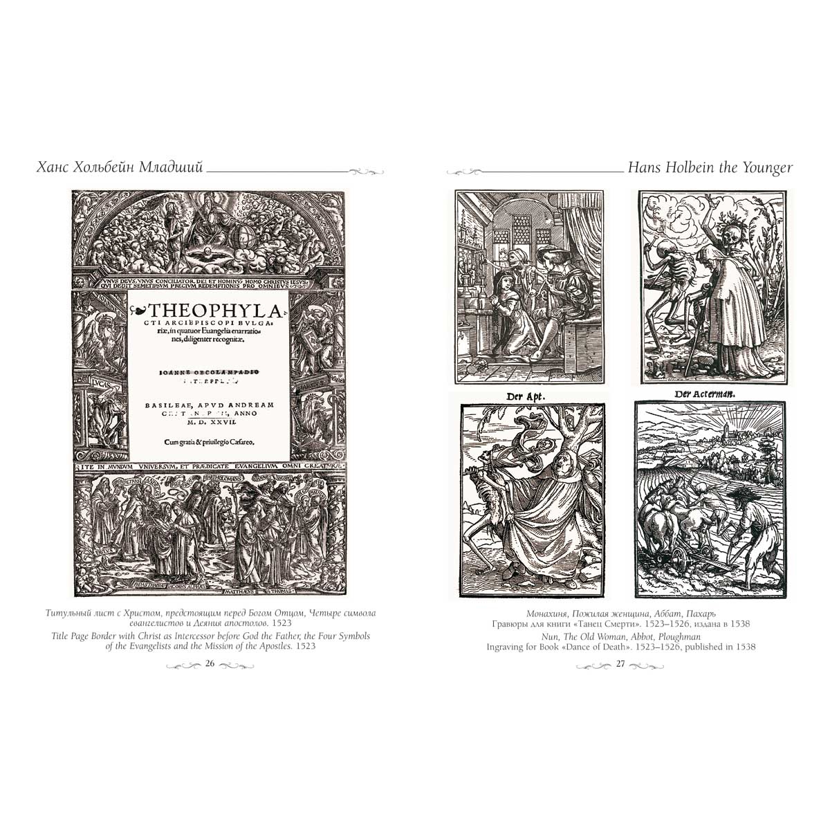Монахиня, Пожилая женщина, Аббат, Пахарь. Гравюры для книги «Танец Смерти». 1523–1526, издана в 1538