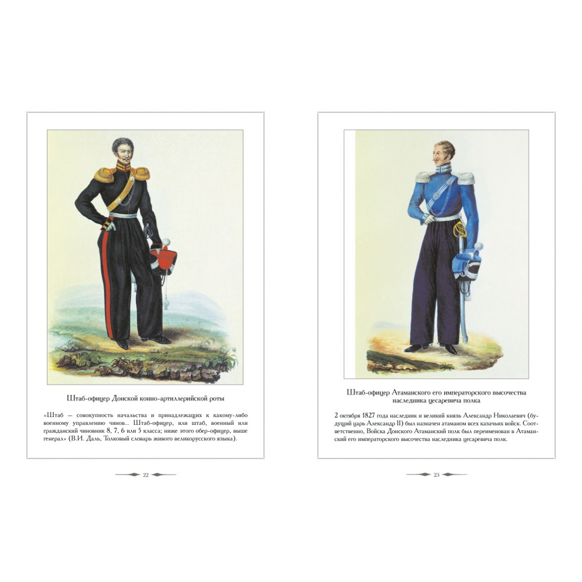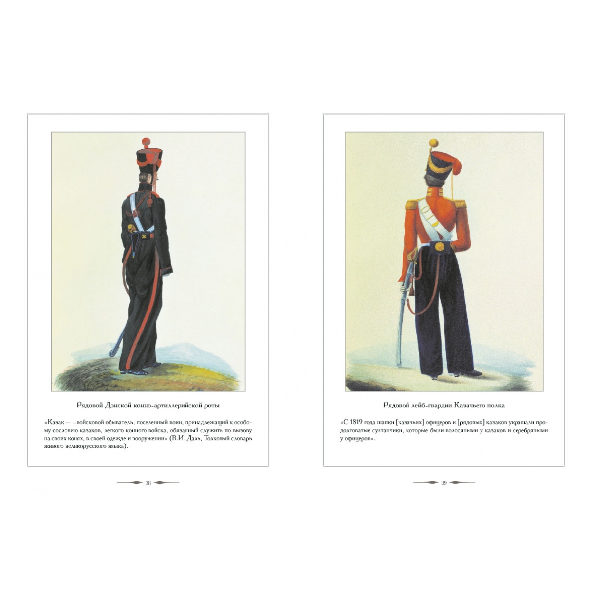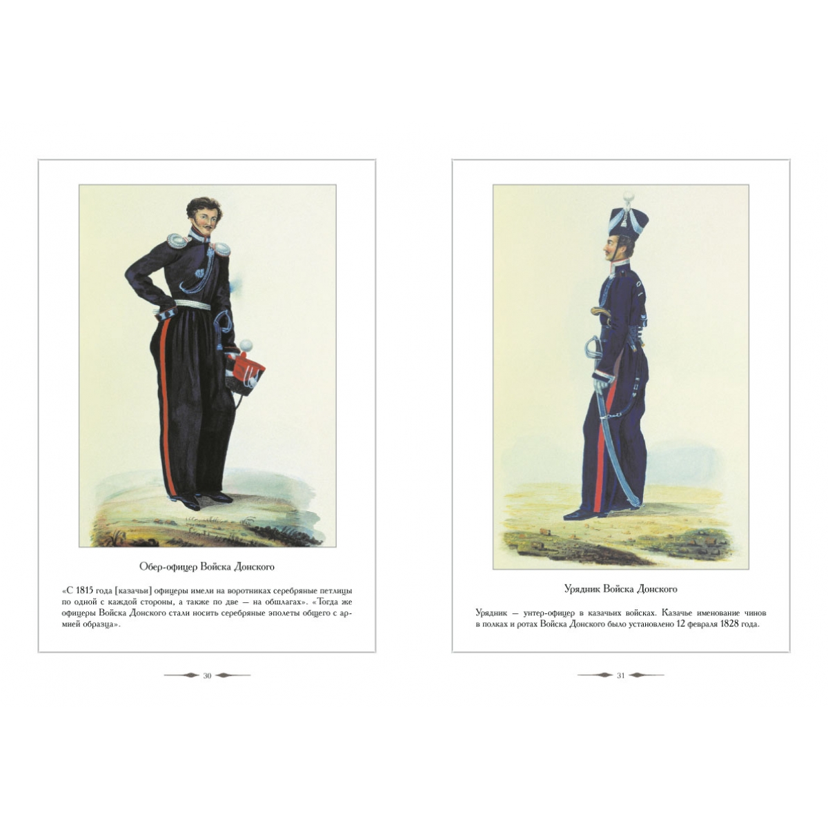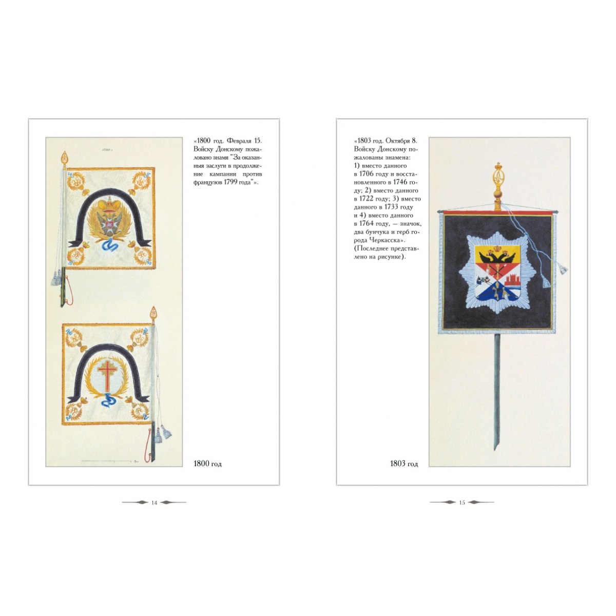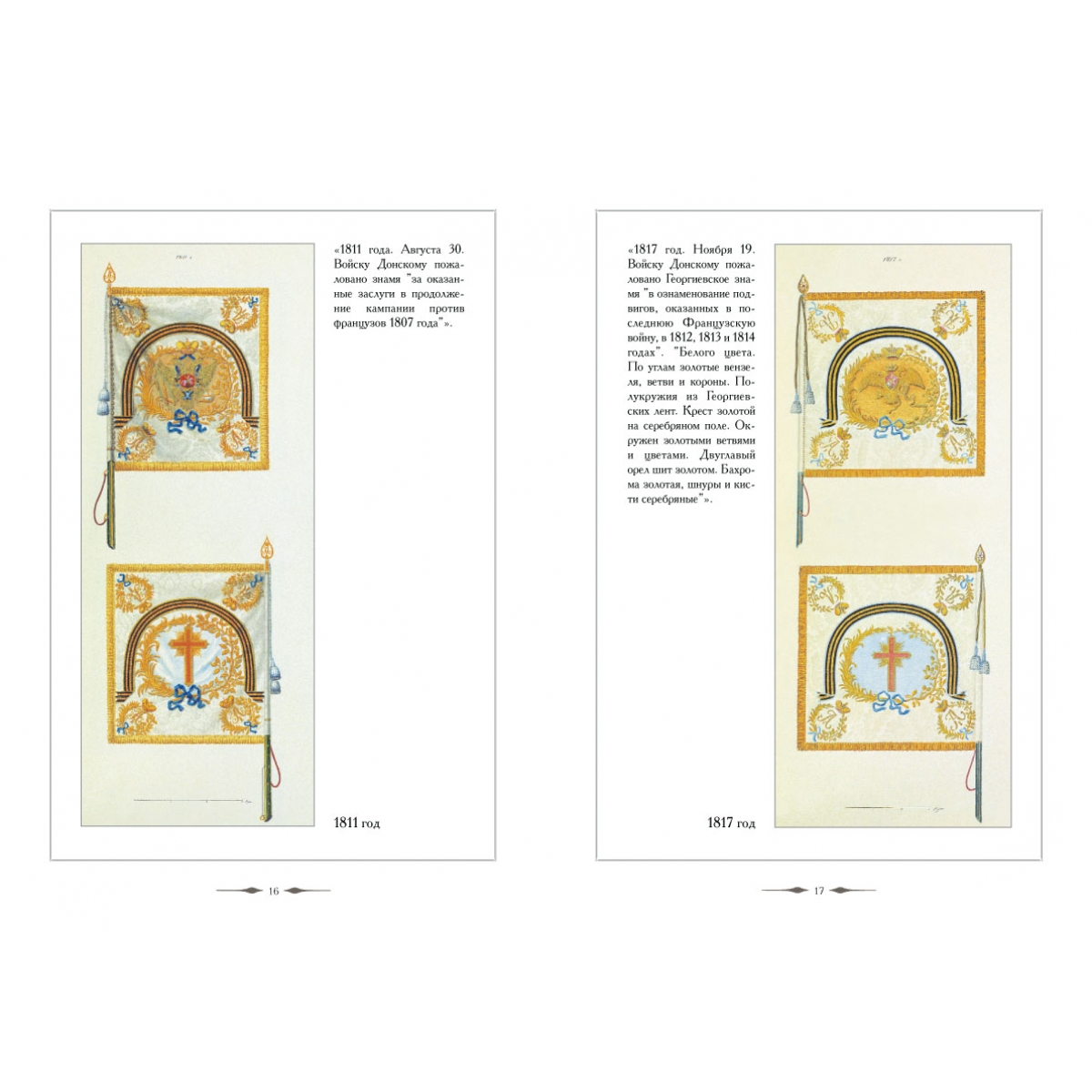 Альбом, который читатель держит в руках, представляет образцы утвержденного законом обмундирования донских казаков – прежде всего, военнослужащих гвардейских частей, – относящиеся к 1830-м годам. Внеся свой весомый вклад в череду русских побед, в первую очередь именно донцы сделали к тому времени слово «казак» известным во всем мире. О том, что это были за победы, говорит представленная здесь подборка знамен, пожалованных Войску Донскому русскими государями – от Петра Великого до Николая I (в начальный период его царствования). Подборка эта далеко не полна: страшный пожар, случившийся 12 августа 1744 года в столице донского казачества городе Черкасске, уничтожил большую часть регалий, к тому времени дарованных войску. В их числе погибли знамена, дарованные царями в XVII веке.