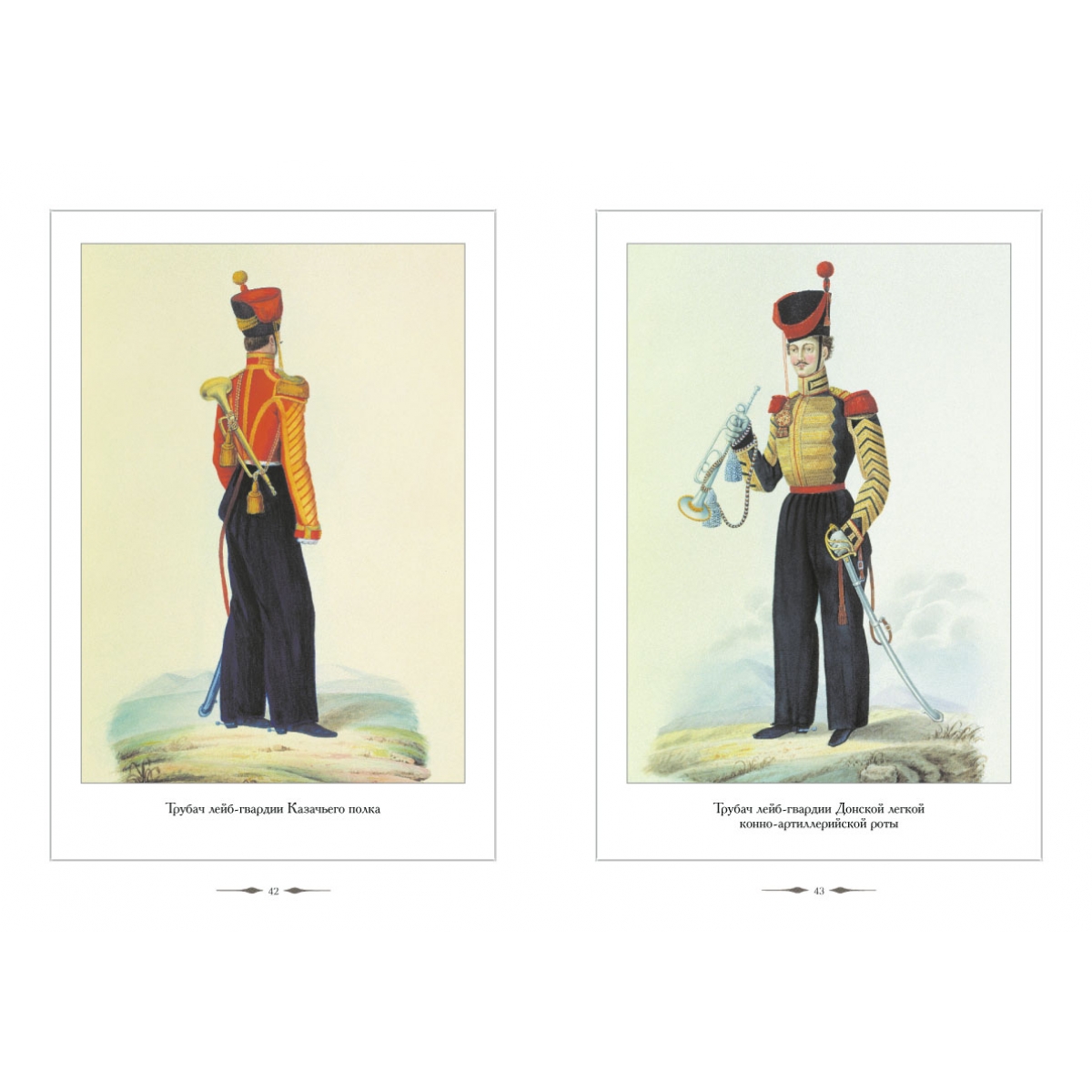 В альбоме представлены образцы утвержденного законом обмундирования донских казаков – прежде всего, военнослужащих гвардейских частей, – относящиеся в 1830-м годам. Внеся свой весомый вклад в череду русских побед, в первую очередь донцы сделали к тому времени имя казака известным во всём мире. О том, что это были за победы, говорит представленная здесь подборка знамён, пожалованных Войску Донскому русскими государями – от Петра Великого до Николая I (в начальный период его царствования). Подборка эта далеко не полна: страшный пожар, случившийся 12 августа 1744 года в столице донских казаков городе Черкасске, уничтожил большую часть регалий, к тому времени дарованных Войску.