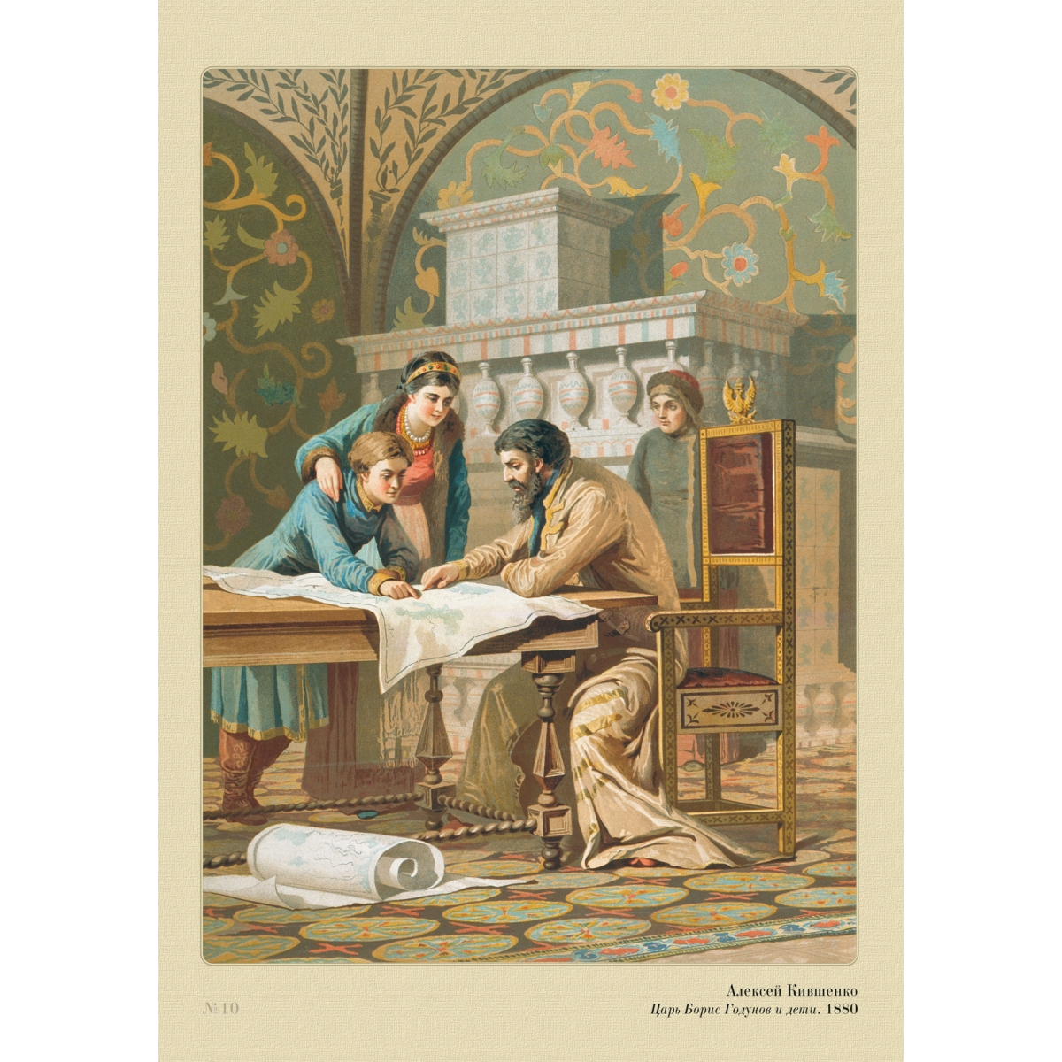Алексей Данилович Кившенко (1851 – 1895) известен как плодовитый и разносторонний живописец. Он зарекомендовал себя хорошим жанристом (по тематике его работы были близки передвижникам), талантливым пейзажистом и баталистом. Но самым ярким наследием мастера, безусловно, являются исторические полотна, подборка которых представлена в данном наборе.