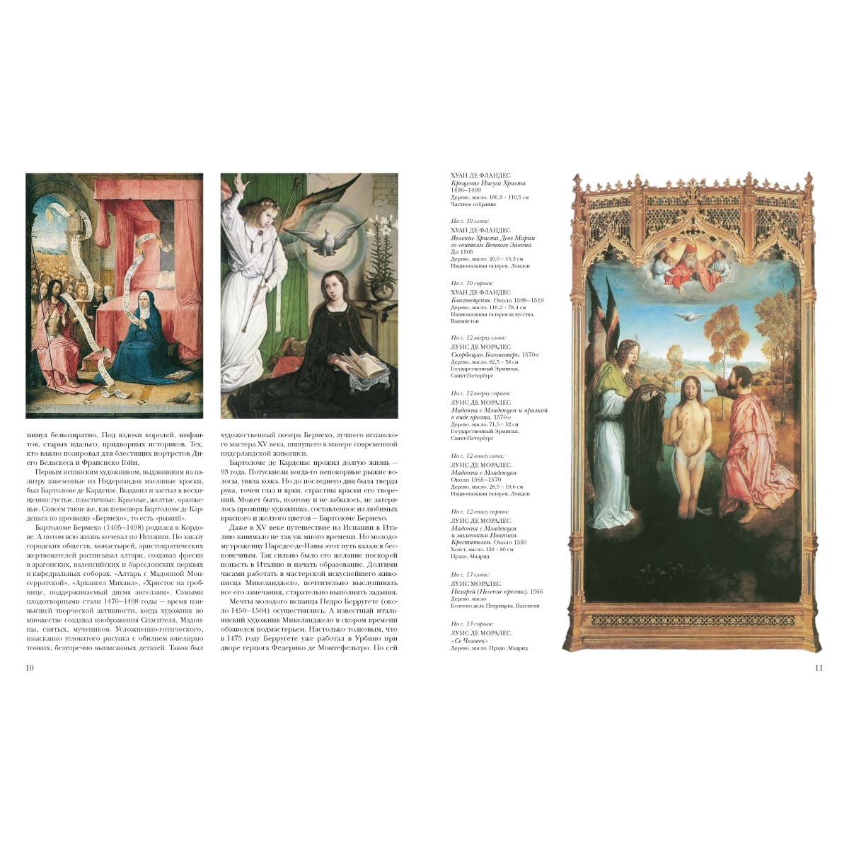 Но трудно поверить, что испанская живопись состоит из нескольких, хотя и очень знаменитых художников. На самом деле, им предшествовало множество малоизвестных, а порой почти и неизвестных живописцев: Бартоломе Бермехо, Педро Берругете, Хуан де Фландес, Луис де Моралес, Алонсо Санчес Коэльо, Франсиско Рибальта, Хуан Баутиста дель Майно… Тех, кто в долгих, тяжелых трудах искал, пробовал, сомневался, находил и щедро передавал свои находки следующему поколению. Такими были Б. Бермехо, первый испанский живописец, применивший в своих картинах вместо привычной средневековой темперы масляные краски; Алонсо Санчес Коэльо, положивший начало жанру испанского парадного портрета. Эти художники и подготовили блистательный золотой век испанской живописи. Преодолев необычайно сильное влияние итальянских и голландских мастеров, перенеся их бесценный, но чужеземный опыт, на родную иберийскую почву.