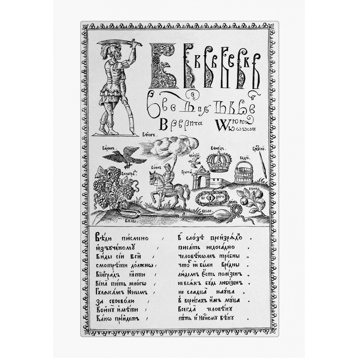 Автор этой азбуки иеромонах московского Чудова монастыря Карион Истомин, поэт и переводчик. Он жил в XVII-XVIII веках (родился в конце 1640-х гг., умер в 1722 г.). Был высокообразованным человеком, окончил патриаршую школу, 22 года проработал на Печатном дворе, пройдя путь от рядового писца и справщика до начальника двора. В 1712 г. работал в Новгороде. Написал учебник по арифметике и другие книги, множество стихов, переводил с греческого. Это сегодня каждый ребенок учится читать по букварю с картинками. А Истомин был первым в России, кто составил такой букварь (даже два - "Малый" и "Большой"). Рядом с каждой буквой алфавита здесь нарисованы предметы, названия которых начинаются с этой буквы: Б - барабан, В - виноград. Идея буквиц в виде человеческих фигур взята из старых славянских рукописей. На каждом листе есть поучительный стих со словами на нужную букву, наставляющий молодых не только учиться читать и писать, но и жить по совести. Прежде бытовало мнение, что грамота нужна человеку для того, чтобы он мог прочесть религиозные тексты - псалмы, Библию, жития святых. Большинство книг были церковными. Но издавались и светские книги, в 1705 г. открылась первая гражданская типография - то есть та, которая выпускает литературу не духовного содержания. Букварь Истомина вышел на заре эры гражданского книгопечатания - на престоле уже сидел царь Петр, который вскоре введет гражданский шрифт и повелит издавать как можно больше светской литературы. В букваре Истомина много предметов из повседневной деревенской жизни - хлеб, холст, узда, изба, ступка. Но много и церковной одежды и утвари - епитрахиль, клобук, потир. Эти вещи не только были хорошо знакомы ему как монаху, но и упоминались в религиозных книгах, которые предстояло прочитать детям, учившимся грамоте по этому букварю. Многие названия предметов в букваре взяты из церковнославянского языка. Этот язык используется во время православной службы. Например: алектор - петух, град - город, делва - бочка. Азбука, с которой знакомит нас букварь Истомина, называется кириллицей в честь христианского проповедника Кирилла по прозвищу Философ (имя Кирилл он принял при постриге, в миру же его звали Константин). Считается, что кириллицу составили ученики Кирилла, а сам Кирилл вместе с братом Мефодием был автором другой славянской азбуки, глаголицы. В некоторых книгах вы можете прочесть, что Кирилл и Мефодий, наоборот, составили кириллицу, а глаголица - это тайнопись, придуманная во времена гонений на славянскую письменность со стороны католиков. Как было на самом деле? Об этом ученые спорят до сих пор. Кириллица основана на греческой азбуке. Для обозначения таких звуков, которые были у славян и каких не было у греков, придумали дополнительные буквы. Поэтому у греков 24 буквы, а в кириллице их было 43. Из старославянской кириллицы возникла и современная русская кириллица, которой мы пользуемся поныне.