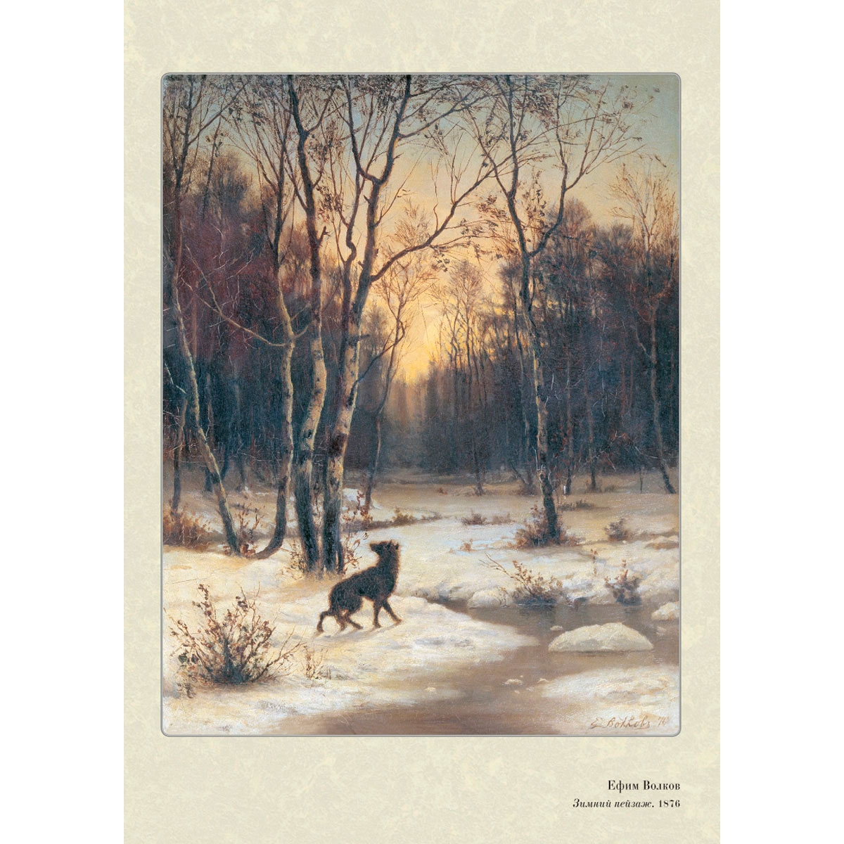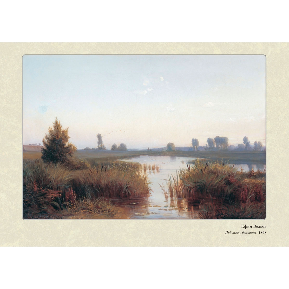 Русский пейзажист и рисовальщик Ефим Ефимович Волков (1844–1920) родился в Петербурге. Он закончил Императорскую Академию художеств и со временем станет академиком «за известность на художественном поприще». Передвижник, он участвовал в выставках Товарищества передвижных художественных выставок, получал премии. Ему, «поэту русской осени и русских туманов», немного было надо, чтобы взяться за кисть – трогательный пейзаж вызывал в нем желание немедленно рассказать зрителям, на какой прекрасной земле они живут. К концу жизни он жил в Петербурге, писал его неброские окрестности. И всегда находились те, кто был ему благодарен за прекрасную живопись, за возможность увидеть красоту и поэзию, которая всегда присутствовала в его картинах