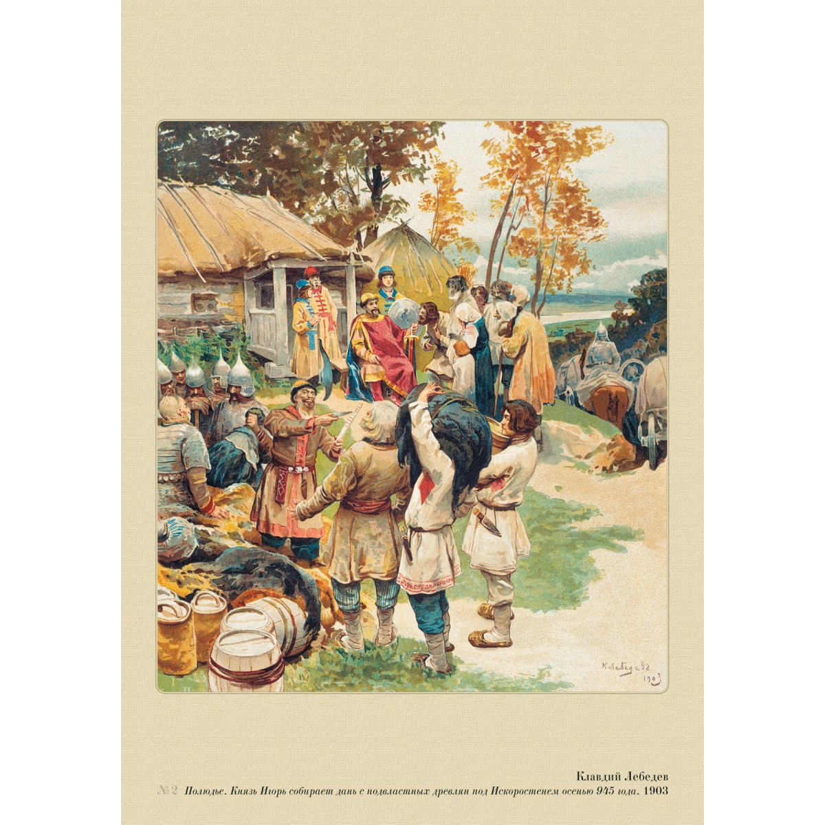 2. Клавдий Лебедев. Полюдье. Князь Игорь собирает дань с подвластных древлян под Искоростенем осенью 945 года. 1903