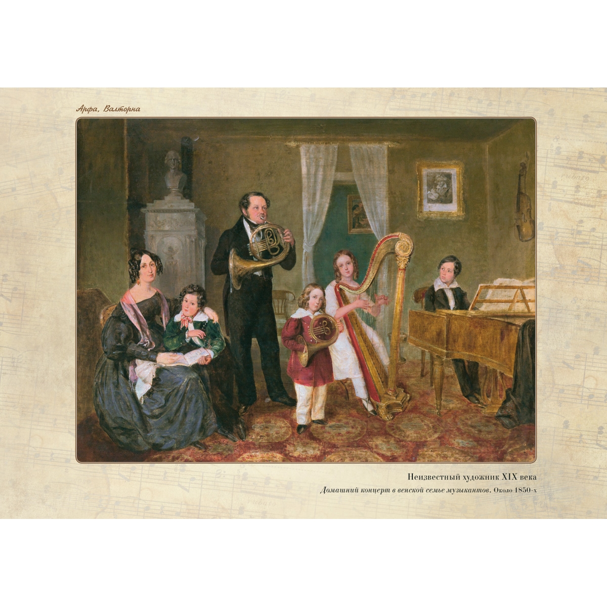 Арфа, Валторна, Фортепиано, Неизвестный художник XIX века. Домашний концерт в венской семье музыкантов. Около 1850-х