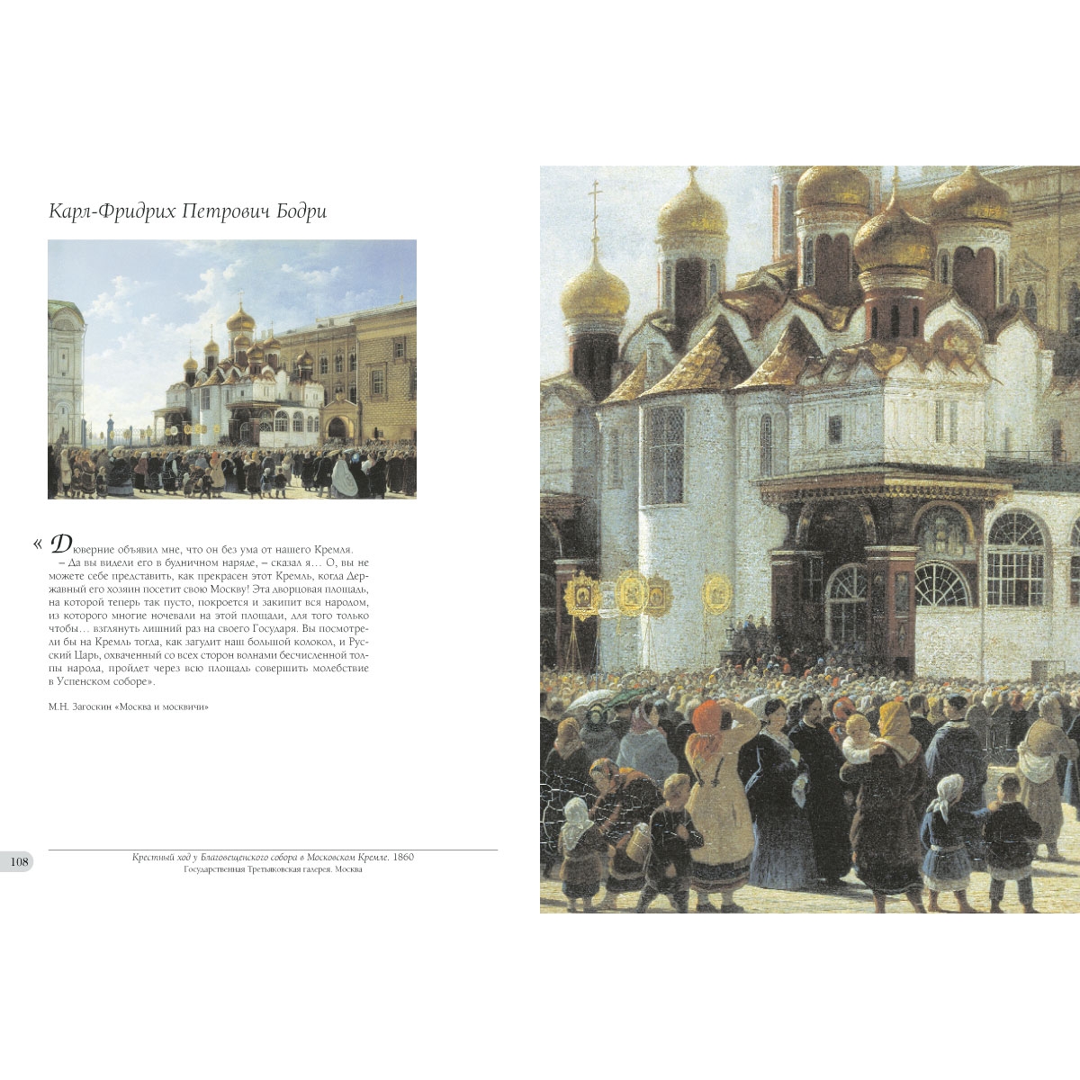 Последний – ХХ век (в этом он мало отличается от предыдущих эпох) уничтожил колоссальную часть исторической Москвы, и ни один из видов великого города не существует больше в том виде, в каком он представлен в этом альбоме – многие из них не существуют вообще. Над картинами, расположенными здесь, насколько это было возможно, в порядке очередности их создания, работали неравноценные мастера. Но и признанных гениев, и безымянных дилетантов роднит любовь к главному городу России. Художникам на страницах альбома вторят их современники-писатели или знатоки старой Москвы. Литературные параллели, будь то фрагменты из произведений великих мастеров слова, а также пейзажные зарисовки из давно забытых беллетристических сочинений, документально точные свидетельства мемуаристов и голоса историков позволяют увидеть московские картины в новом, часто неожиданном свете.