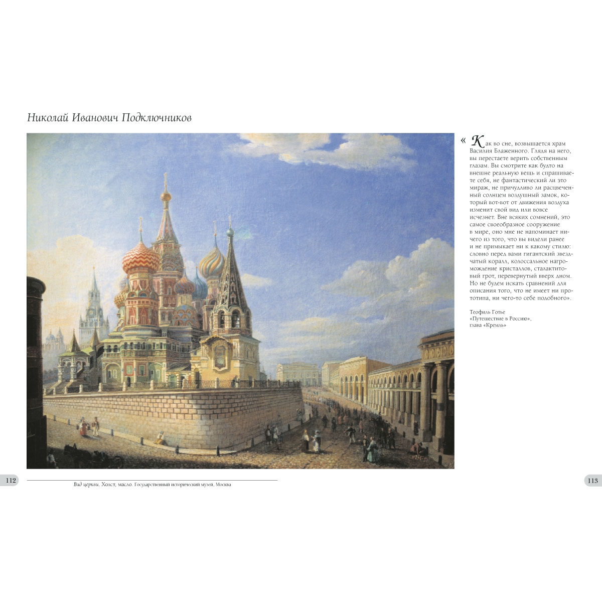О фантастическом зрелище Москвы накануне наполеоновского нашествия и пожара, дают представление великолепные, напоенные ласковым солнцем, умиротворенные, при всем их многолюдстве, городские пейзажи академика Федора Яковлевича Алексеева (1753–1824), направленного Павлом I для «снятия видов» в древнюю столицу.