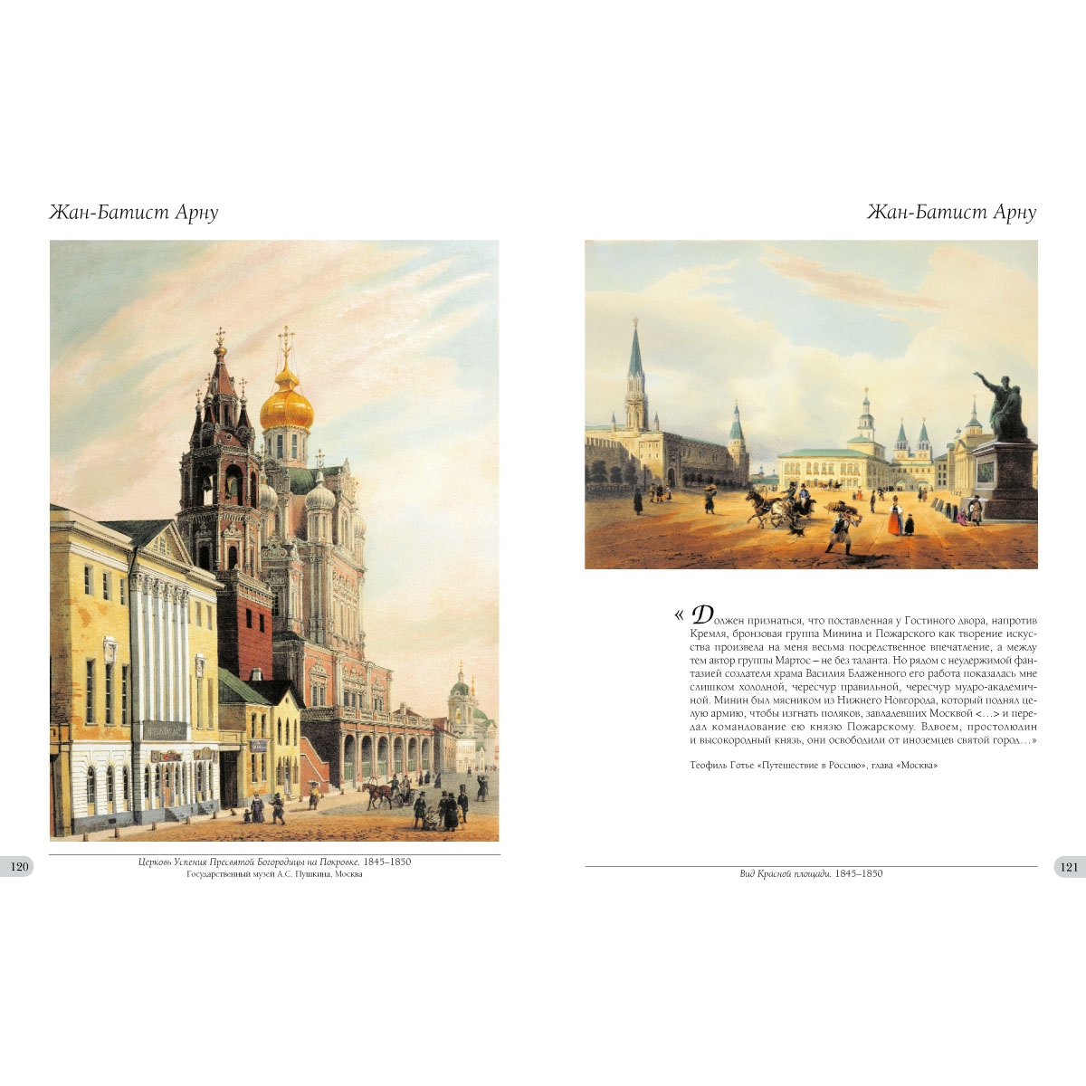 В очередной раз восставшую, словно Феникс из пепла, послепожарную Москву 1820-х годов XIX века рисуют и пишут гораздо чаще, чем во все предыдущие века – к этому времени Россия уже обладает собственной, в том числе и пейзажной художественной школой, стоящей вровень с европейскими школами. В московских картинах ведущих русских пейзажистов второй четверти XIX столетия, как, например, в полотнах Максима Воробьева или братьев Чернецовых, взволнованность и благоговение перед памятниками столицы сочетаются с западной, воистину фотографической отчетливостью изображения. Впрочем, обойтись без поддержки иностранцев тем, кто занят «оптовыми» поставками видов Москвы на зарубежный и отечественный рынок, не удается. Интерес к русской истории, к ее московскому периоду, среди образованных классов империи велик как никогда. Огромным спросом среди так называемого простого народа пользуются изображения московских святынь – соборов и монастырей. Европа жаждет увидеть таинственную душу России – древнюю резиденцию царей, сердце загадочного «северного исполина». Соответственно, для создания нескольких серий литографий с московскими пейзажами оборотистые издатели Фельтен и Дациаро на рубеже 1840–1850-х годов привлекают группу русских и иностранных художников – Бенуа, Вивиена, Арну, Шарлеманя, Индейцева, Дитца и других. Свыше ста листов, изготовленных ими за короткое время, печатаются огромными по тем временам тиражами и, продаваясь «за недорого», расходятся по всей стране и за рубежом.