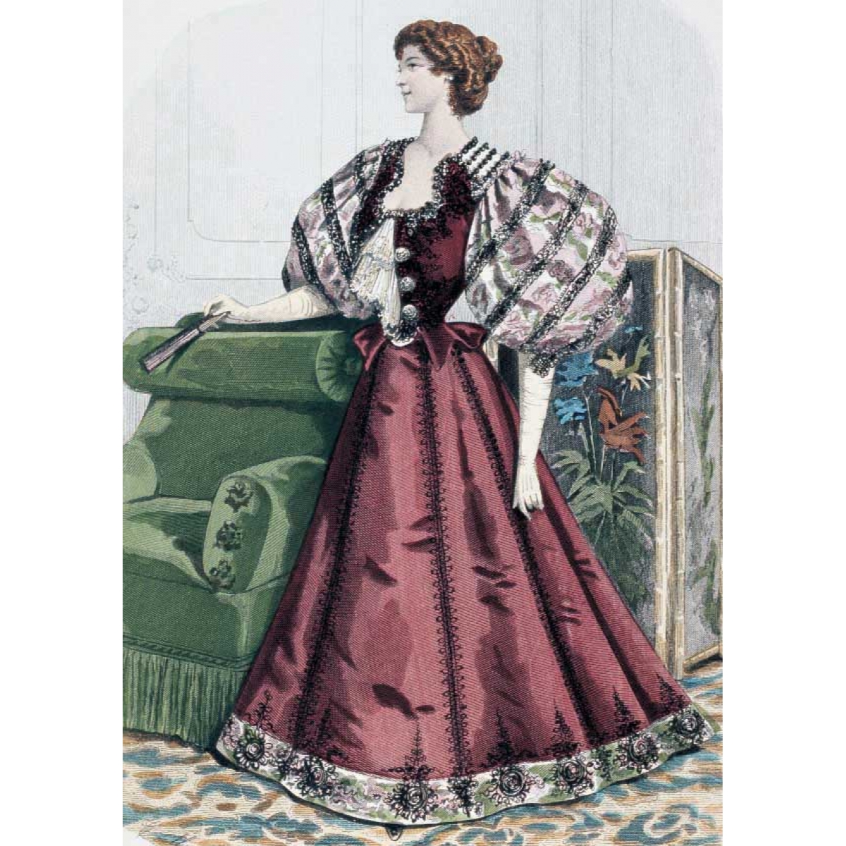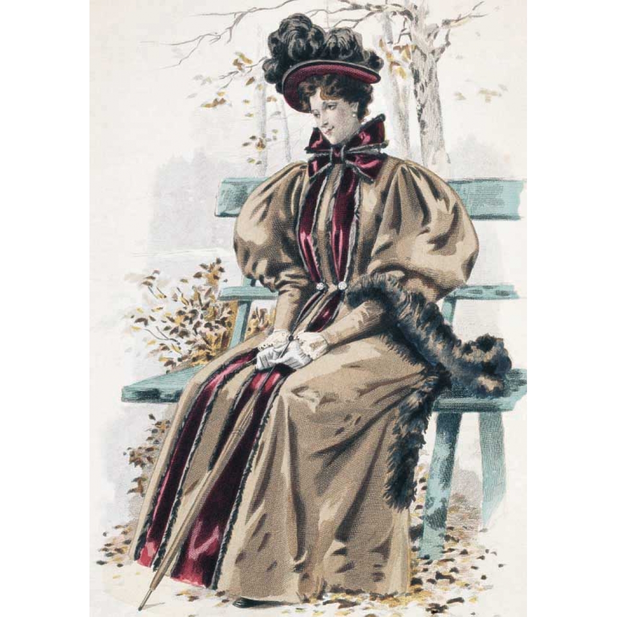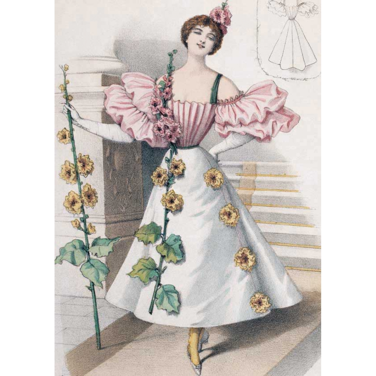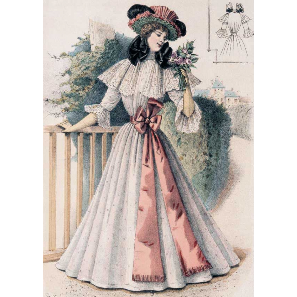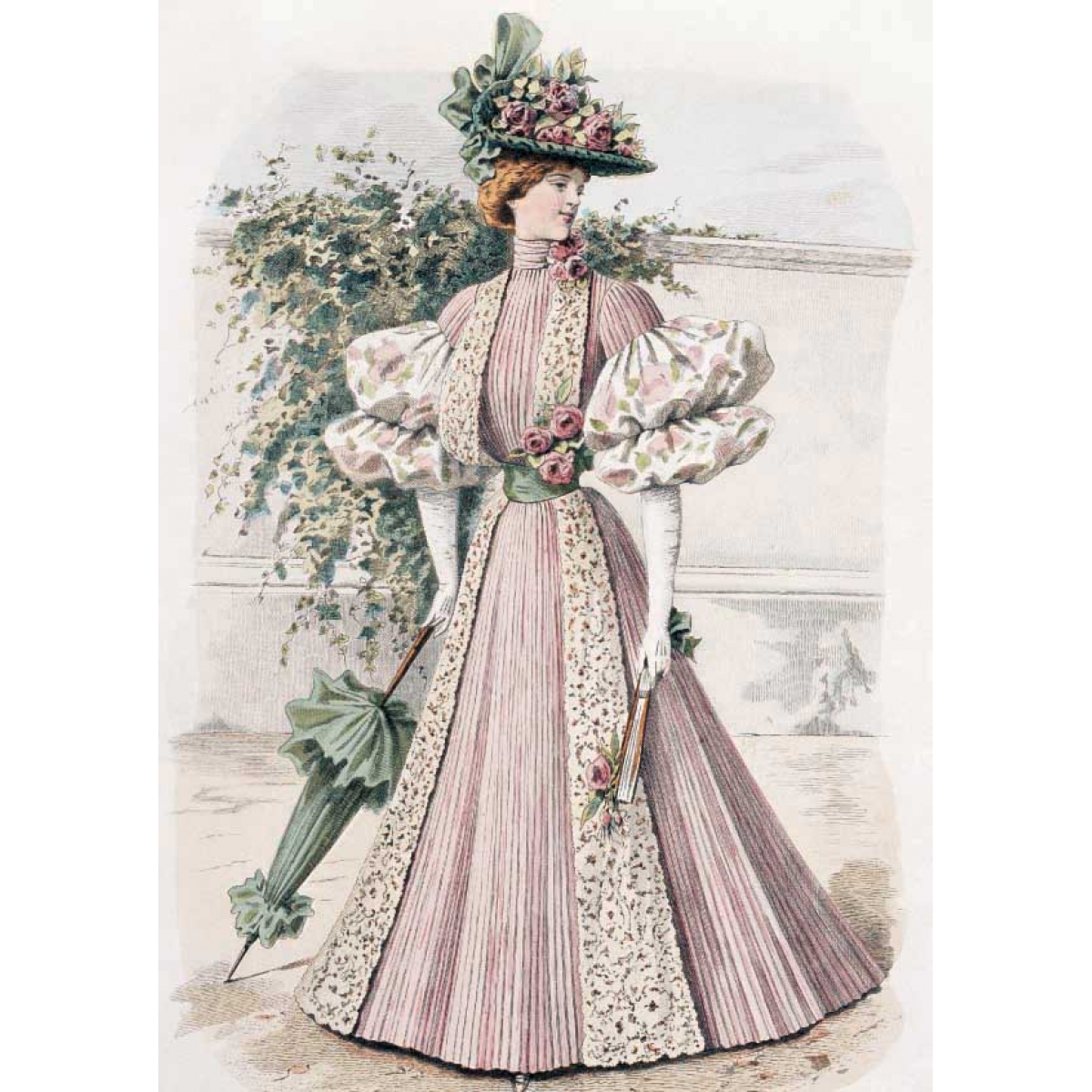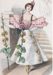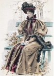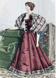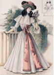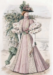 Мода причудлива и капризна. В 1890-е годы силуэт женского костюма изменился. Турнюр вышел из моды и покрой платья заметно упростился. Акцент делали на узкую талию и широкие рукава-буфы, юбка плотно обтягивала бедра и расширялась колоколом внизу. Все эти детали вы сможете увидеть в представленных открытках, которые будут интересны любому человеку, интересующемуся модой и историей дамского костюма.