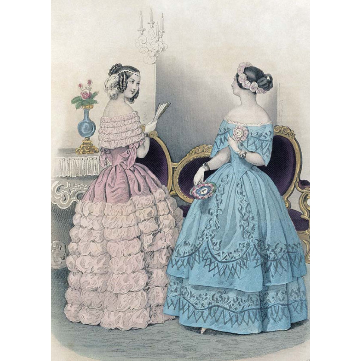 Французские журналы «Le Moniteur de la mode. Journal du grand monde: modes, literature, beaux-arts, theatres, ets.» («Светский журнал: мода, литература, изящные искусства, театр и т.д.») и «Petit Courrier des Dames. Journal des Modes» («Маленький дамский вестник. Журнал мод») издавались в Париже и были ориентированы на состоятельную публику.