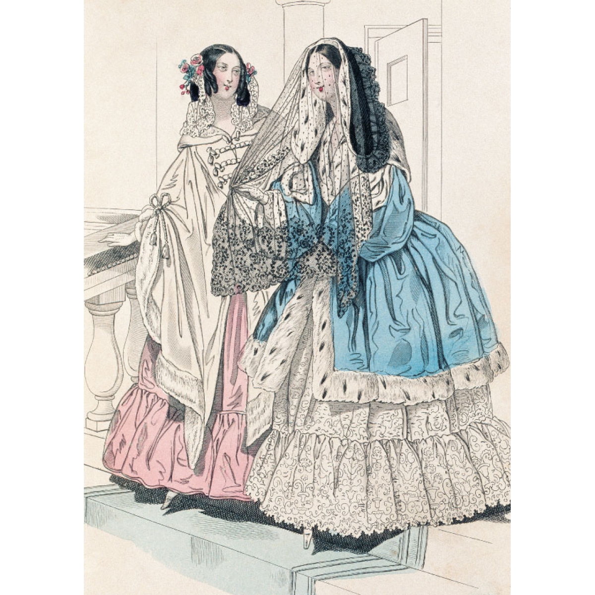 Набор открыток представляет избранные иллюстрации модных картинок из французских журналов «Le moniteur de la mode» и «Petit Courrier des Dames». Оба журнала издавались в Париже и были ориентированы на состоятельную публику. Сегодня эти красочные гравюры – бесценные исторические свидетельства ушедшей эпохи