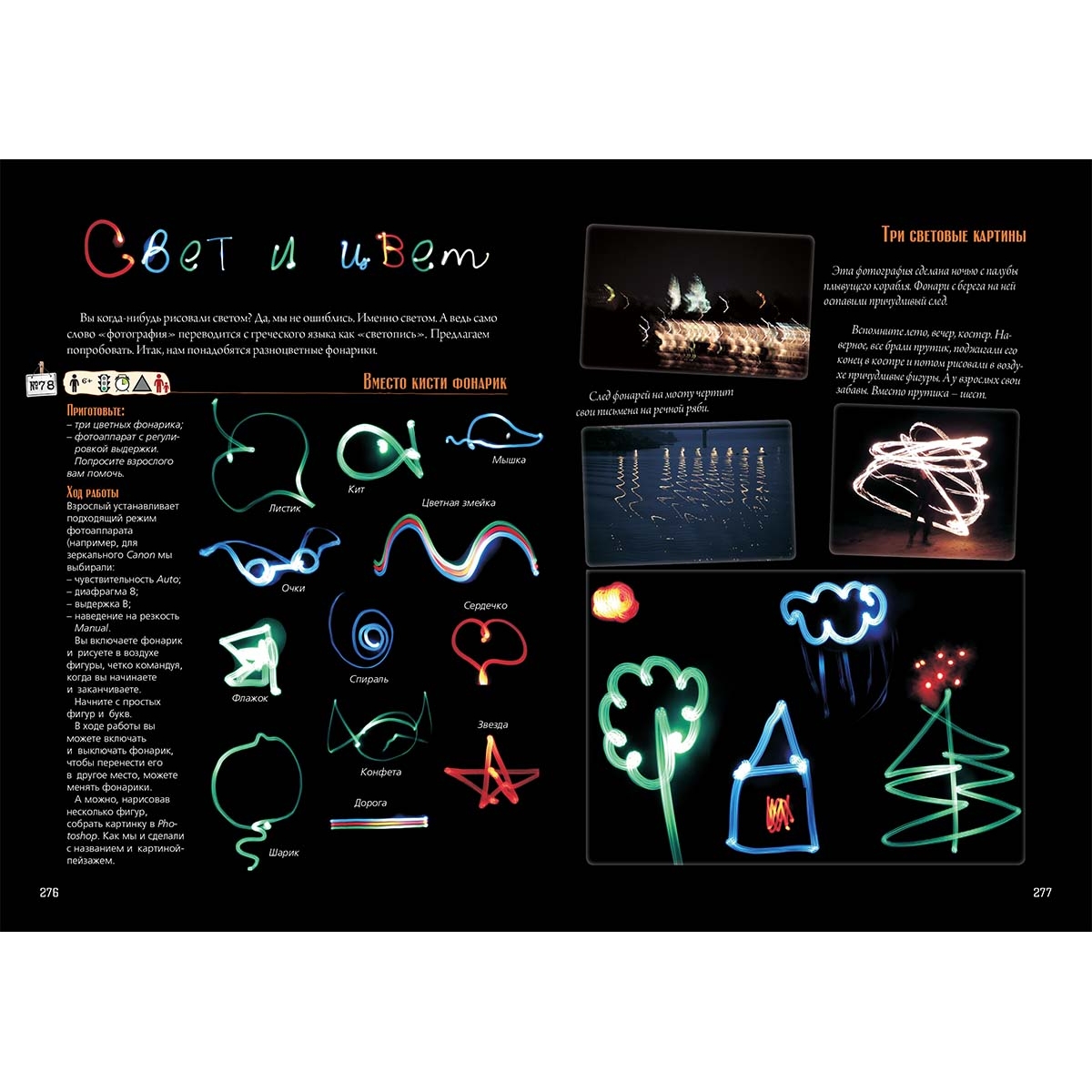В книгу, составленную по материалам домашнего научного кружка, вошло более 100 физических опытов и около 200 рассказов о свете и цвете. В книге около 1700 фотографий, репродукций картин и рисунков. Книга дополнена рассказами из книг Я. Перельмана, Тома Тита и др., посвященных данной теме. Книга будет интересна родителям, учителям и руководителям кружков.