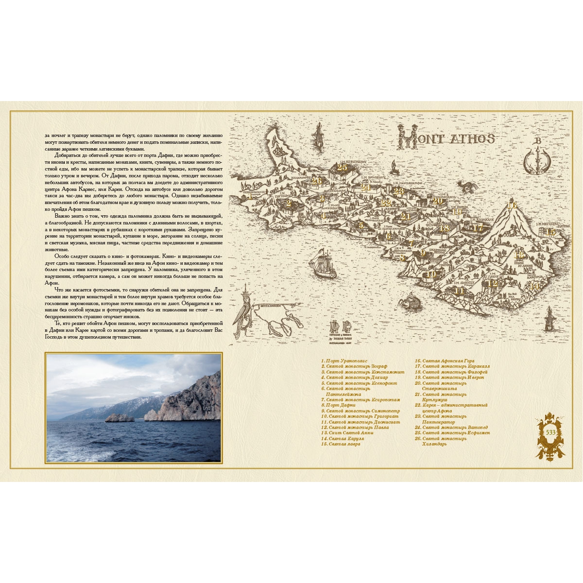 Георгий Юдин, дважды побывавший на Святой Горе, выступает как автор текста, фотограф и дизайнер.